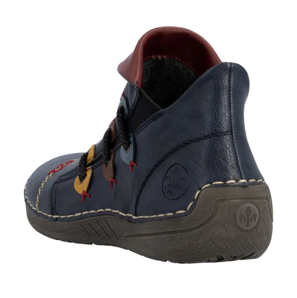 Rieker støvle til dame i blå. Denne model har en smart blå farve og praktiske detaljer, der gør den nem at bruge i hverdagen. Lynlåsen på indersiden og elastikken på ydersiden gør det hurtigt at komme i og af skoen. Indvendigt finder du en let foring og en blød Rieker-soft sål, som giver god komfort hele dagen. Ydersålen er mønstret og bidrager til både stødabsorbering og skridsikkerhed, så du står stabilt og går trygt.