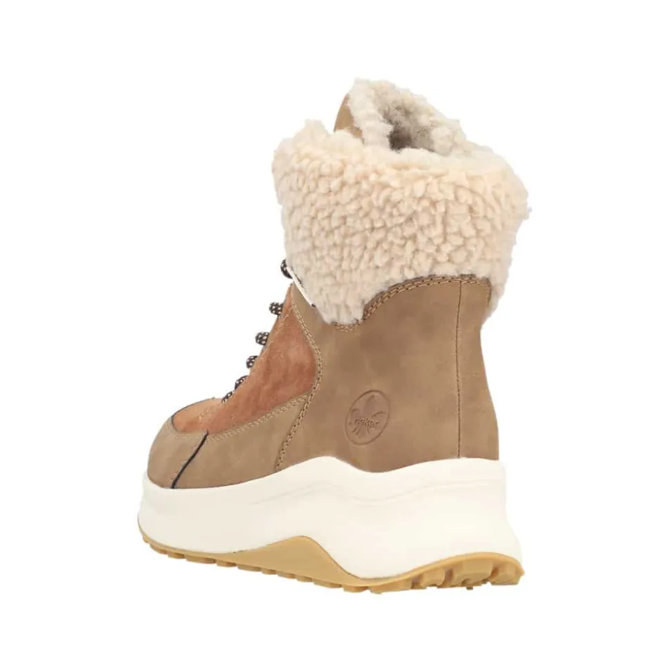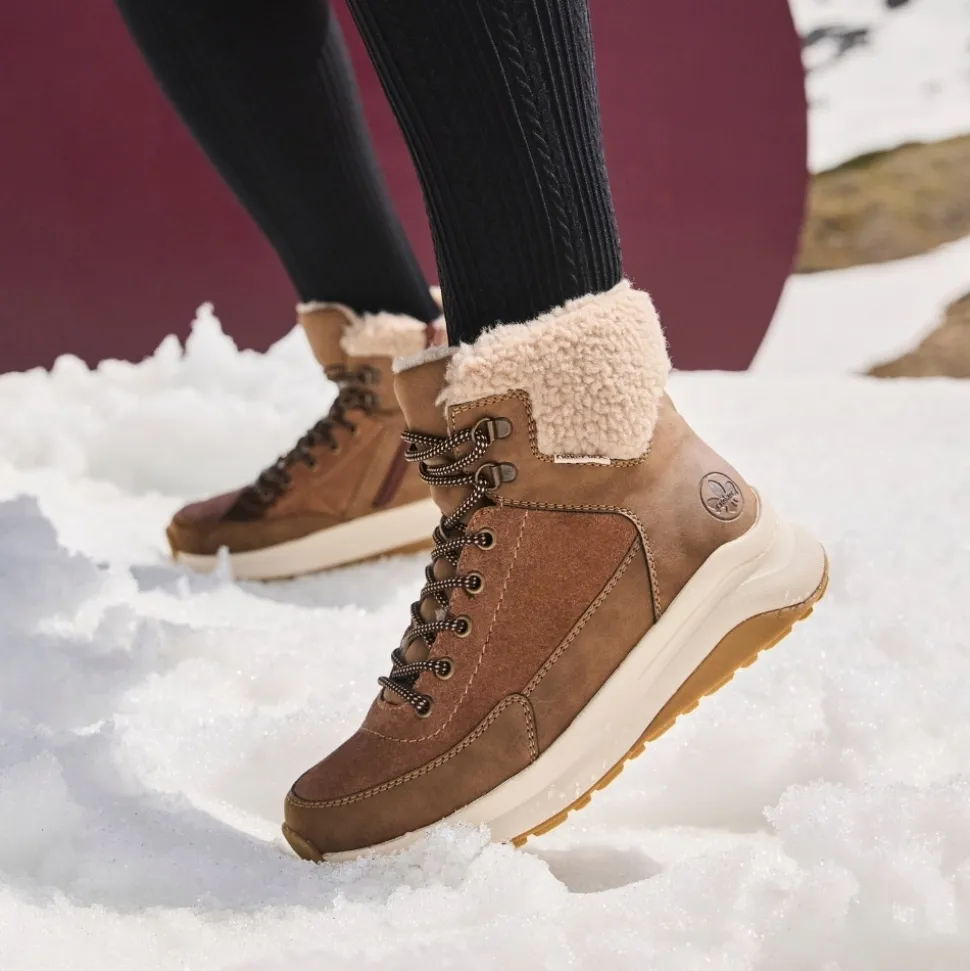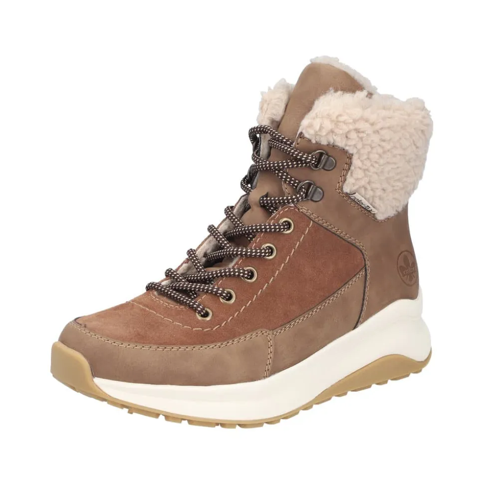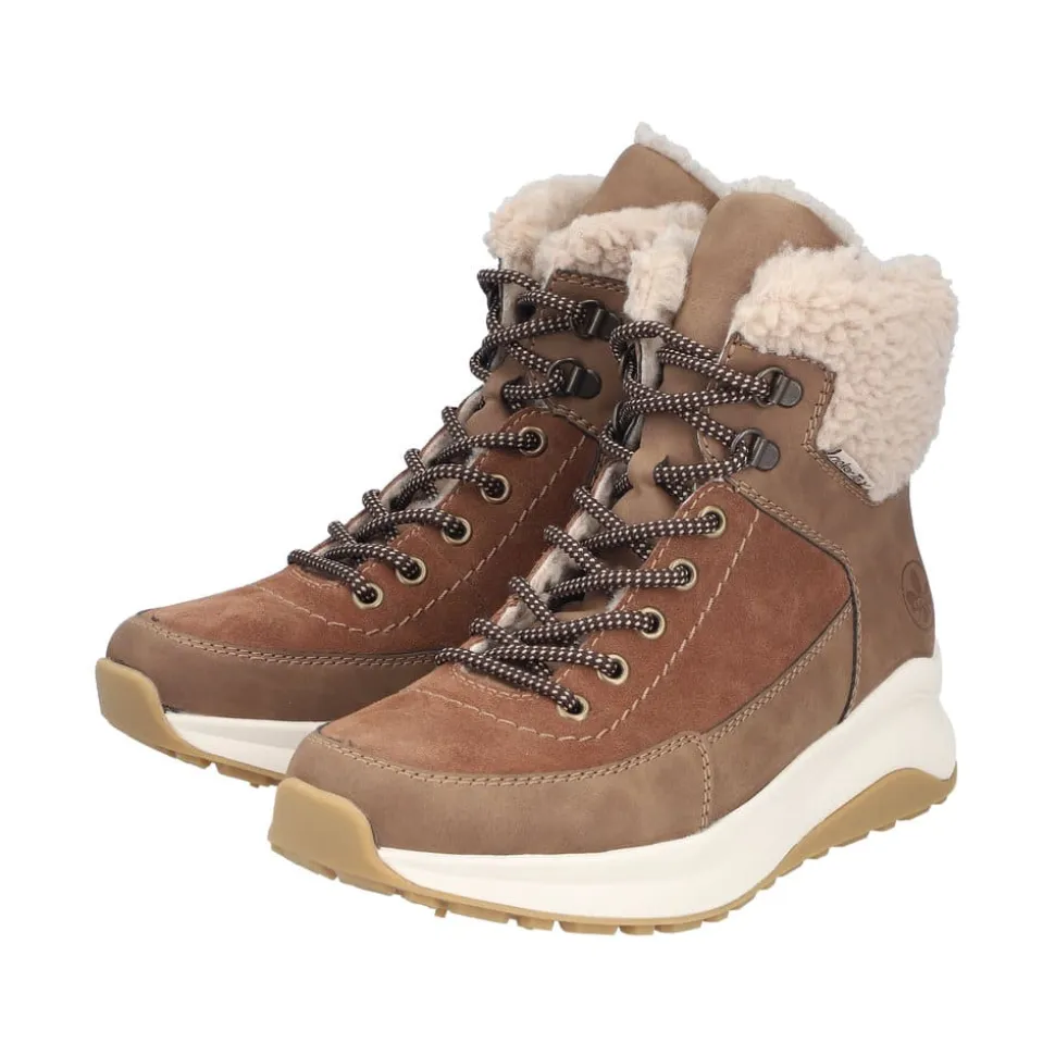Rieker støvle til dame i brun. Moderne vinterstøvle i en smuk brun farve med smarte detaljer, der tilfører et stilfuldt udtryk. Foran har støvlen snørebånd, så du kan justere pasformen, mens lynlåsen på indersiden gør den nem at tage af og på. Indvendigt sørger den varme foring og den bløde, udtagelige indersål for høj komfort gennem hele dagen. Takket være Rieker-Tex er støvlen kraftigt vandafvisende, og den chunky ydersål med stødabsorbering og et mønster giver øget skridsikkerhed.