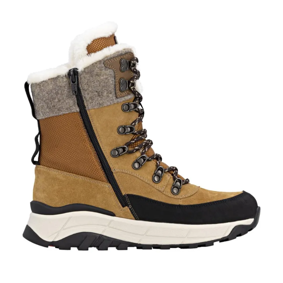 Rieker Revolution vinterstøvle til dame i brun. Disse Rieker snørestøvler til kvinder i en elegant brun farve kombinerer design og funktion, så du er klar til de kolde dage. Den praktiske kombination af snørebånd og lynlås sikrer en perfekt pasform og støtte. Med den lette og fleksible sål kan du nyde maksimal komfort hele dagen. Det vandafvisende ydermateriale med TEX-membran beskytter effektivt mod regn og sne, mens den varme termiske indersål holder fødderne dejligt lune. Den specialudviklede Fiber-Grip sål giver ekstra stabilitet, og det bløde, uldforede indre gør støvlerne til dine nye favoritter, uanset hvor vinterens eventyr fører dig hen.