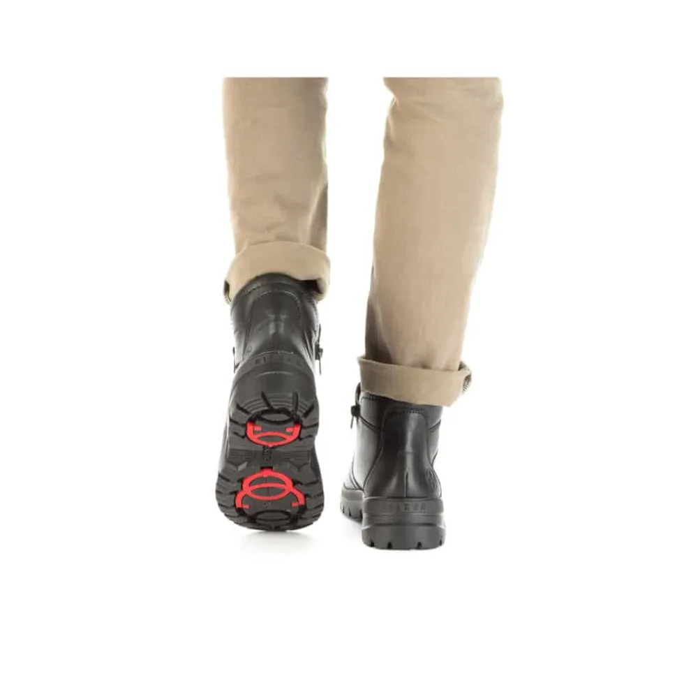 Rieker støvle til herre i sort. Smart herrestøvle i sort med moderne detaljer, der giver et stilfuldt udtryk. Støvlen er fremstillet med en skindoverdel og har to funktionelle lynlåse, som gør den nem at tage af og på. Indvendigt finder du en blød og udtagelig termosål, der sikrer god komfort, mens den varme foring holder fødderne lune. Støvlen er rummelig med ekstra bredde G og udstyret med Rieker-Tex, som gør den kraftigt vandafvisende. Den chunky ydersål har stødabsorbering og foldbare pigge, som giver øget skridsikkerhed og støtte.