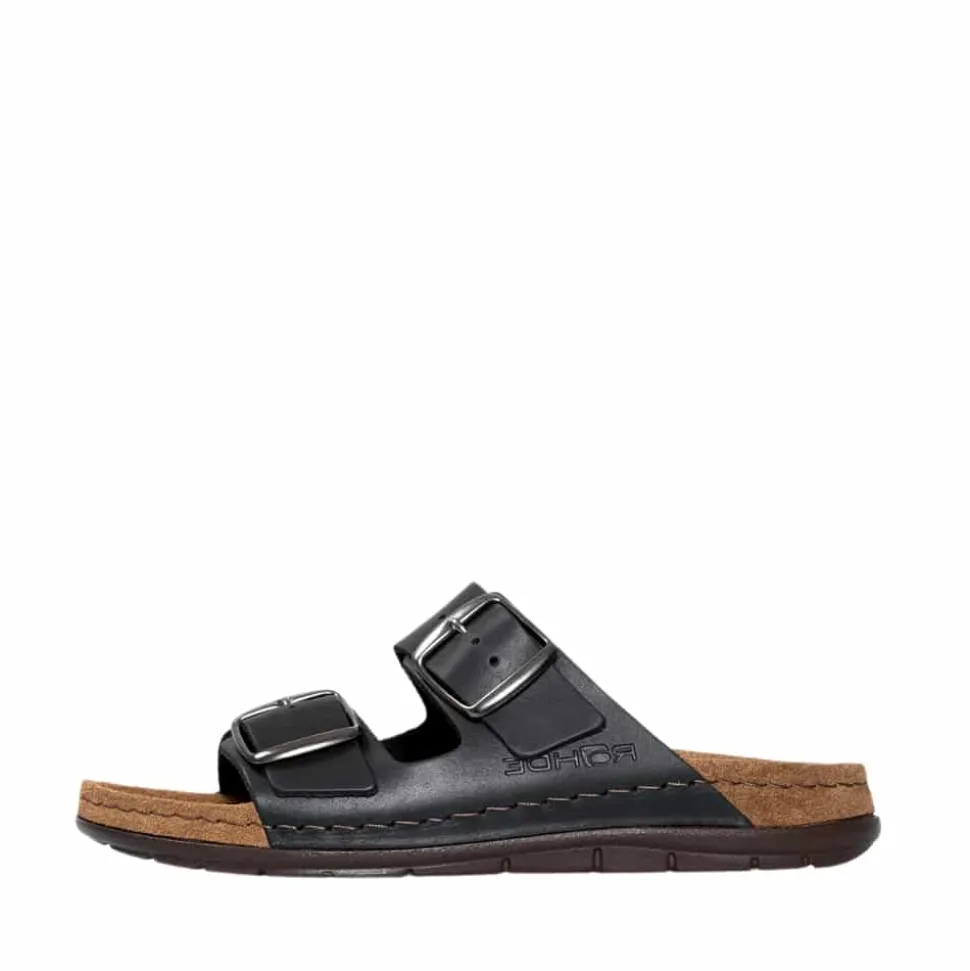 Rohde Easys N°42 sandal til dame i sort. Dyk ned i komforten med denne klassiske og lette sandal fra Rohde. Med to justerbare spænder kan du skræddersy pasformen til din fod perfekt. Denne model er omhyggeligt fremstillet af kvalitetsskind både udvendigt og indvendigt, hvilket tilføjer en ekstra dimension af luksus og holdbarhed. Den indbyggede Memory stødabsorberende sål sikrer, at hvert skridt føles blødt og behageligt, hvilket gør den ideel til lange gåture og aktiviteter hele dagen. Memory-fodsengen har et let Memory-gelindlæg, der støtter den naturlige bevægelse, fordeler trykket og giver ekstra komfort og støtte til foden.