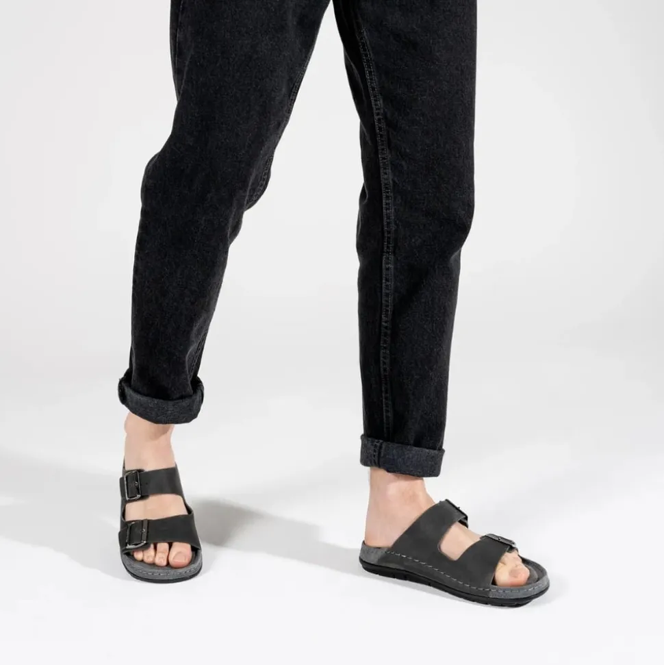 Rohde Easys N°42 sandal i grå til herre er designet til at give ultimativ komfort. Memory-fodsengen er særligt blød og former sig efter din fod, hvilket sikrer behagelig støtte hele dagen. Justerbare spænder gør det muligt at tilpasse pasformen, mens overdelen i naturlæder med sin varierende struktur skaber et unikt look, der gør hver sandal unik. Sandalen er fremstillet med læder af høj kvalitet i brugt look, som er både holdbart og naturligt. Indersålen er lavet af ruskind, som er åndbar og robust, mens sålen i PU giver fremragende støddæmpning, er let og skridsikker, og ikke efterlader mærker. Memory-fodsengen med sit lette memory-gel-indlæg støtter naturlig bevægelse, fordeler trykket og aflaster foden. Med sin G-pasform byder denne sandal på ekstra komfort og en god pasform.