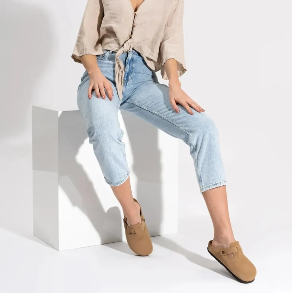 Rohde Sunnys N°15 sandal til dame i beige. Denne ROHDE SUNNYS slippers i natur/beige er lavet med en skridsikker sål og en dyb, åndbar læderindersål med en fleksibel kork-latex-kerne. Den justerbare spænde sikrer en variabel pasform, og det robuste over materiale af velourslæder giver ikke kun en behagelig fornemmelse, men også et moderne look.