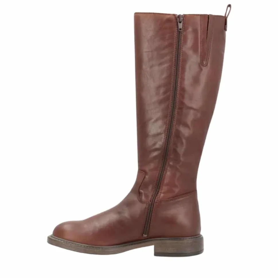 Shoedesign Copenhagen Montana lang støvle til dame i mørkebrun. Denne stilrene og moderne støvle er det perfekte valg, hvis du ønsker en elegant støvle med god komfort. Støvlen er lavet af 100% skind og har en praktisk lynlås på indersiden, der gør den nem at tage på og af. Den lille elastik i skaftet sikrer en behagelig pasform, uden at gå på kompromis med det enkle design. Ydersålen har et godt mønster, som giver ekstra skridsikkerhed, så støvlen er både trendy og funktionel.