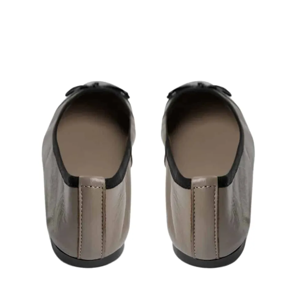Sofie Schnoor ballerinasko til dame i mørk sand. Fuldend din garderobe med disse smukke ballerina sko fra Sofie Schnoor. Den sandfarvede læderoverdel og den laklakerede snude giver et stilfuldt udtryk, mens sløjfen på forfoden tilføjer et sødt element. Gummisålen med rillet mønster gør, at du står godt fast hele dagen, og skoene er almindelige i størrelsen for en perfekt pasform.
