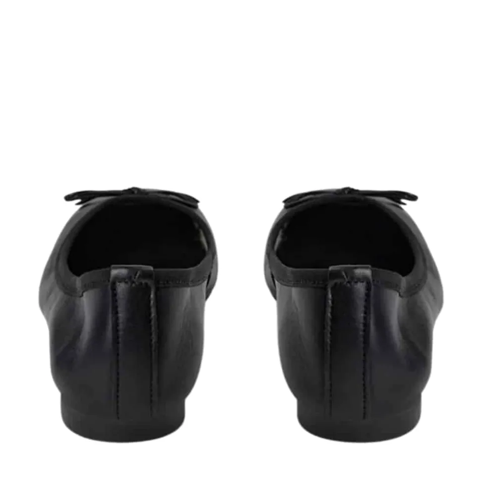 Sofie Schnoor ballerinasko til dame i sort. Giv dit outfit et feminint twist med denne smukke sorte ballerinasko. Den fine sløjfe over vristen og den firkantede snude tilføjer et moderne og elegant udtryk. Fremstillet i 100% skind for optimal komfort og holdbarhed, mens gummisålen sikrer et stabilt og behageligt skridt dagen lang.