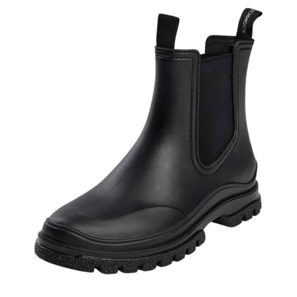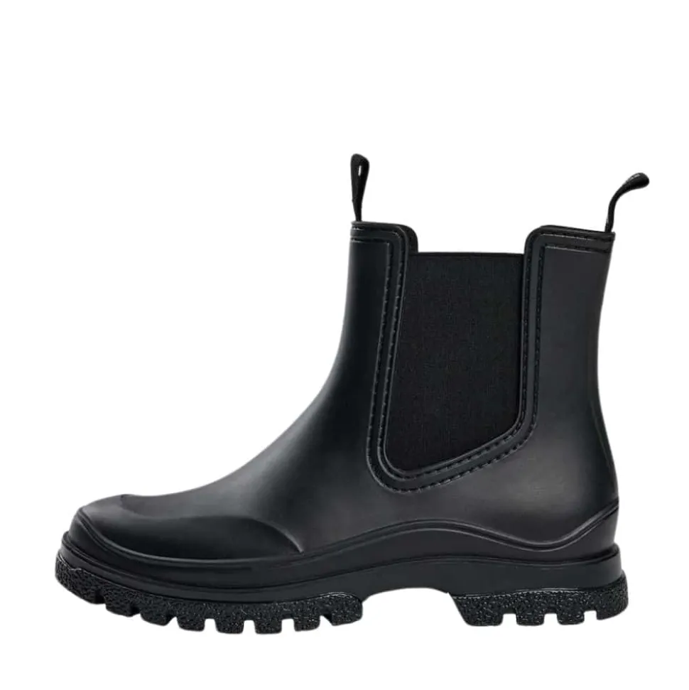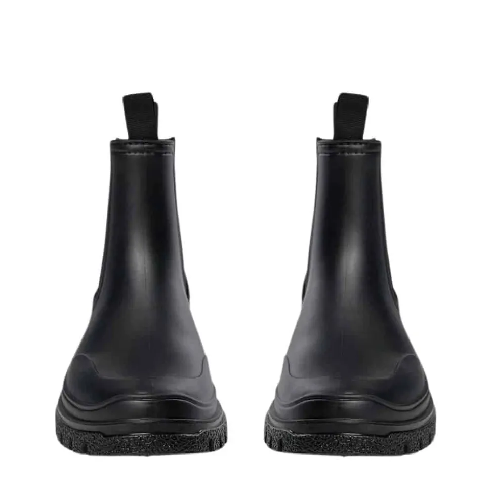 Sofie Schnoor gummistøvle til dame i sort. En fremragende og moderne gummistøvle i en tidløs farve, der udstråler elegance, med fine detaljer. Udstyret med elastik i begge sider, hvilket gør dem lette at tage af og på. Støvlen har desuden en robust sål med et mønster, der sikrer bedre greb og stabilitet.