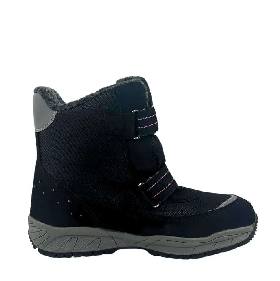 Sprox støvle til børn i sort. Komfortabel vinterstøvle til store børn i sort med smarte detaljer på siden, der giver et smart look. Støvlen har velcroremme foran der giver en justerbar pasform og gør det let at komme i og af støvlen. Indvendigt bliver du mødt af en varm foring der holder dine fødder lune, mens C-Texi membranen gør støvlen kraftig vandafvisende. Den solide ydersål med et godt mønster giver støtte og øget skridsikkerhed.