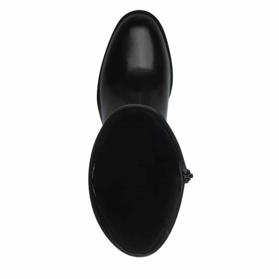 Tamaris lang støvle til dame i sort. Smuk støvle i klassisk sort med en gylden detalje på siden, der tilfører et stilfuldt touch. Overdelen er i blødt skind, og kombinationen af lynlås og elastik på indersiden gør den nem at tage af og på samt sikrer en behagelig pasform. Indvendigt giver Touch-It indersålen god komfort ved at følge fodens naturlige bevægelser, mens den lette foring holder fødderne lune. Blokhælen på cirka 4 cm løfter looket elegant og er udstyret med Anti-Slide for bedre støtte og skridsikkerhed.
