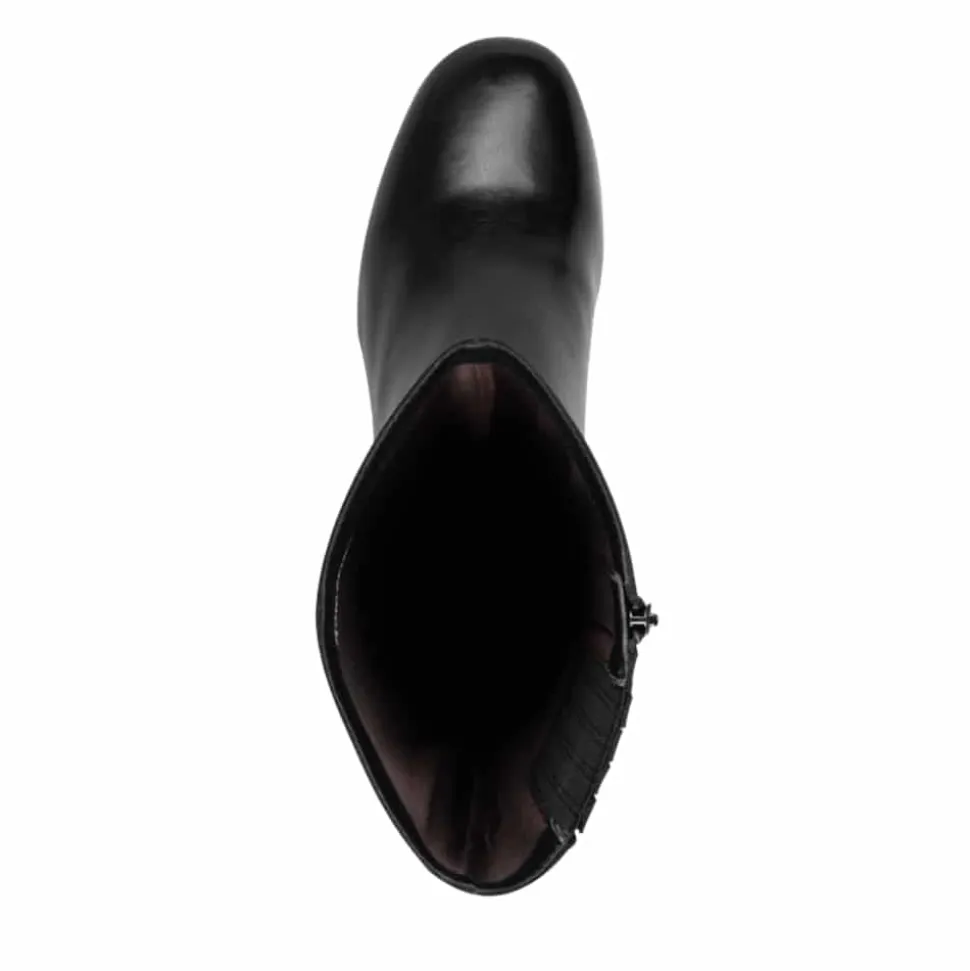 Tamaris lang støvle til dame i sort. Denne klassiske sorte støvle med langt skaft kombinerer enkelthed med et moderne udtryk. Overdelen er fremstillet i blødt skind og den funktionelle lynlås på indersiden samt elastikken sikrer en fleksibel pasform og gør støvlen let at tage af og på. Indvendigt er den udstyret med en blød indersål med Touch It teknologi, som former sig efter foden. Blokhælen på ca 6 cm er designet med Anti Slide og Anti Shock, der giver øget komfort og skridsikkerhed.