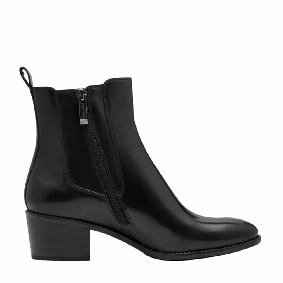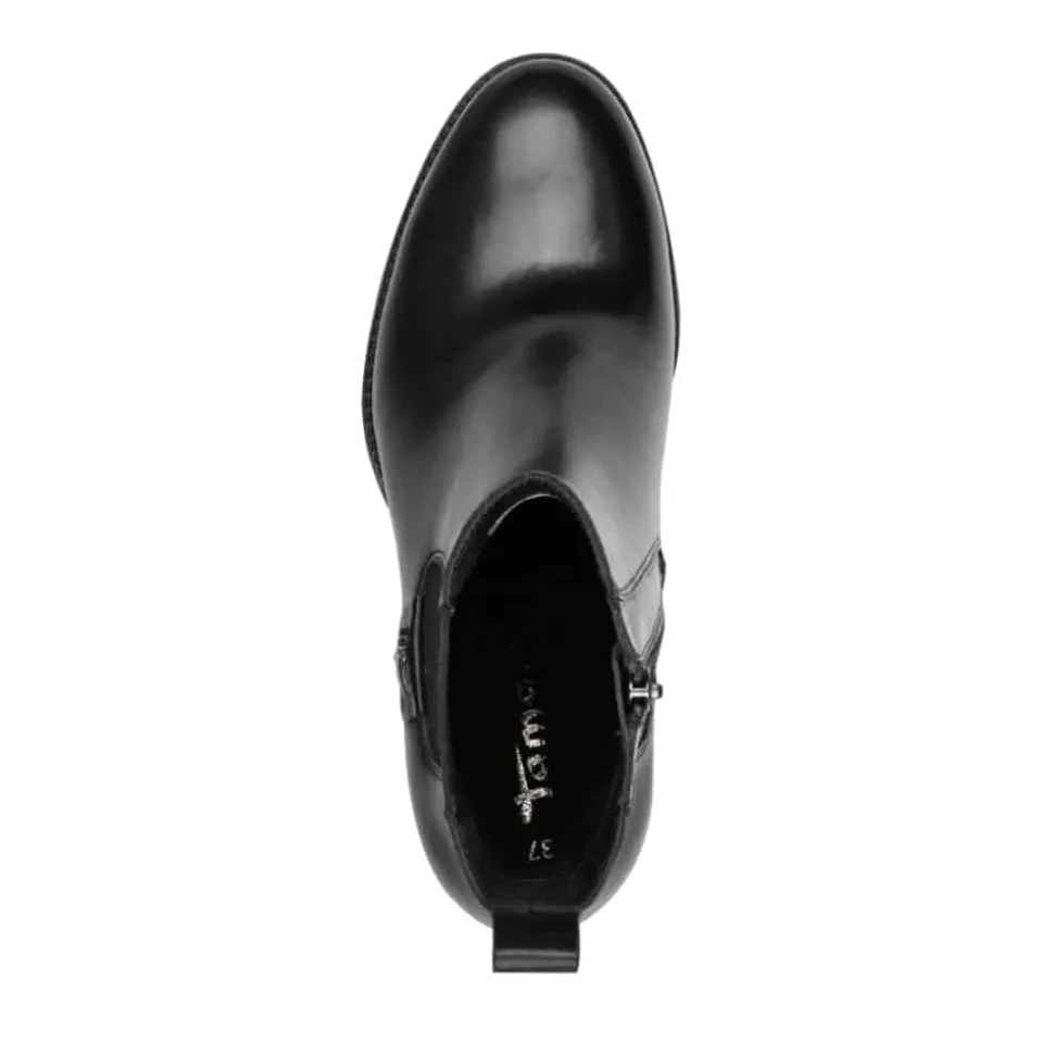 Tamaris støvle til dame i sort. Klassisk sort støvle med skindoverdel og et tidløst udtryk. Modellen har elastik på ydersiden og en lynlås på indersiden, så den er nem at tage af og på. Indvendigt finder du en blød sål, der sikrer komfort hele dagen. Hælen på 4,5 cm giver et elegant løft, mens ydersålen med Antislide giver bedre skridsikkerhed ved hvert skridt.