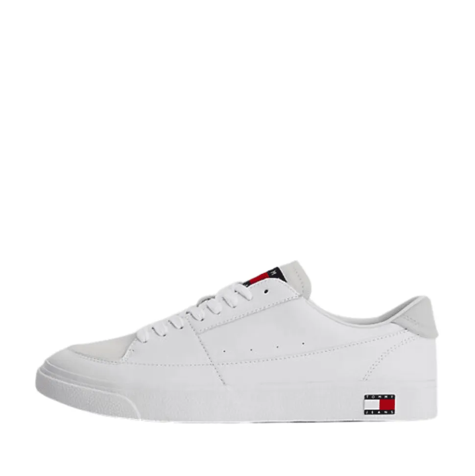 Tommy Hilfiger sneakers i hvid til herre EMOEMO1106YBR. Lækker sneakers i skind fra Tommy Jeans. Modellen har et klassisk hvidt og stilrent design med beige detaljer. Modellen har snøre foran, så du kan justere den efter din fod. Dejlig fleksibel og let sneakers.