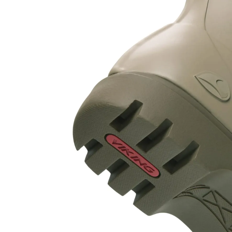 Viking Noble kortskaftet gummistøvle i grøn/brun. Oplev ultimativ stil og komfort med Viking Noble gummistøvle, skabt specielt til damer. Denne elegante støvle kombinerer moderne design med uovertruffen funktionalitet, så du kan navigere gennem både regnfulde dage og stilfulde anledninger med lethed. Med en slidstærk, vandtæt konstruktion og en fleksibel sål, tilbyder Viking Noble den perfekte balance mellem beskyttelse og bevægelsesfrihed. Dejlig blød gummistøvle med udtagelige indlæg. Giv dine fødder det bedste, og lad Viking Noble gummistøvle være din nye go-to i både byens puls og naturens ro.
