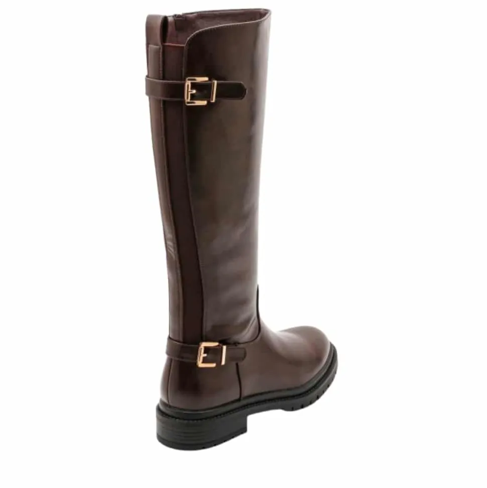 Amour lang støvle til dame i mørkebrun. Klassisk støvle i en smuk mørkebrun farve med et langt skaft og elegante spænde detaljer, der tilfører et moderne udtryk. På indersiden gør en funktionel lynlås det let at tage støvlen af og på, mens elastikken bagpå sikrer en behagelig og fleksibel pasform. Indvendigt giver den bløde indersål komfort dagen igennem, og den chunky ydersål fuldender designet med et stilfuldt og smart look.