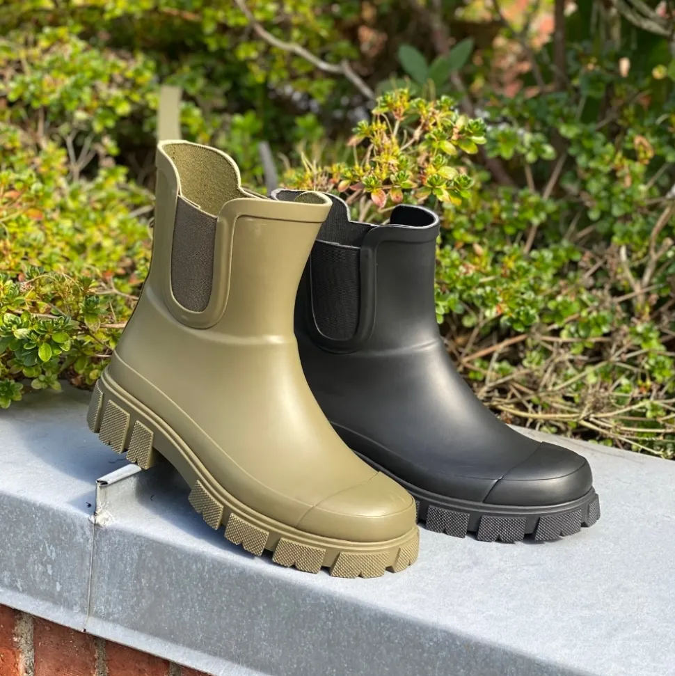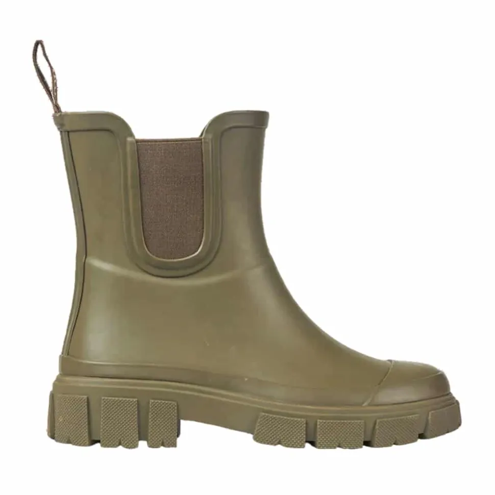 Angulus gummistøvle til dame i grøn. Oplev den perfekte kombination af stil og funktionalitet med denne bløde og fleksible gummistøvle. Designet med en chunky track-sål, der giver dig både komfort og stabilitet, er denne støvle ideel til enhver udfordring, uanset vejret. De praktiske elastikkiler i siderne og den sporty logorem bagtil gør det nemt at tage støvlen af og på. Med en skridsikker sål af naturgummi og et blødt let foer i bomuldsblanding er dine fødder sikret maksimal komfort. Fremstillet af vandtæt naturgummi og helt PVC-fri, er denne støvle både 100% vandtæt og miljøvenlig.