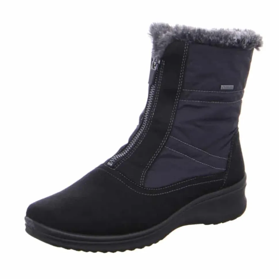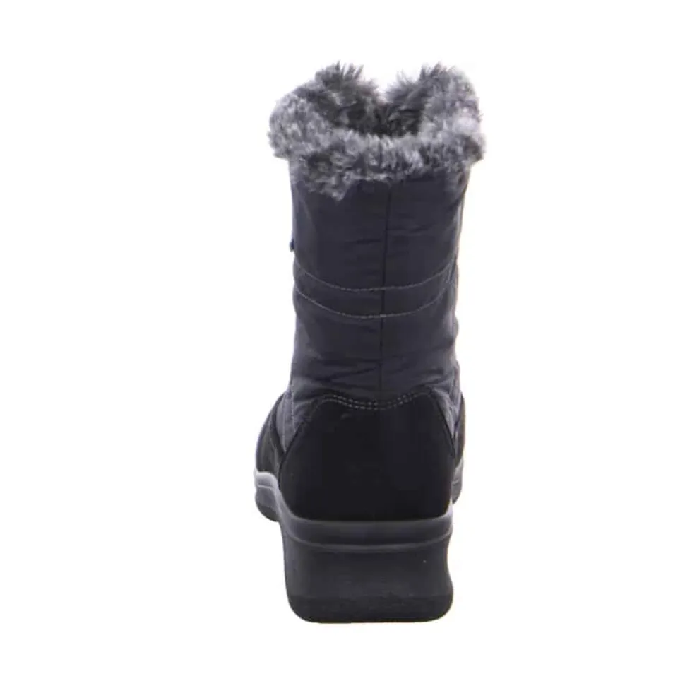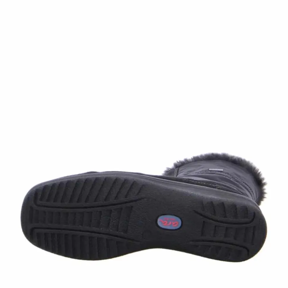Ara vinterstøvle i sort til dame. Denne varmeforede damestøvle fra Ara kombinerer moderne design med stil og komfort. Det bløde, varme for indeni omslutter fødderne behageligt, mens lynlåsen sikrer en tæt pasform omkring foden. Den brede skovidde (H) forhindrer tryk og giver en dejlig følelse, selv efter en hel dag i støvlerne. Den fleksible gummisål sikrer optimal komfort ved hvert skridt. Med sin Gore-Tex-membran er støvlen både vandtæt og åndbar, så fødderne holdes tørre og komfortable i al slags vejr. Med denne varmeforede støvlet fra ara er du sikret høj komfort og en stilfuld dag på farten.