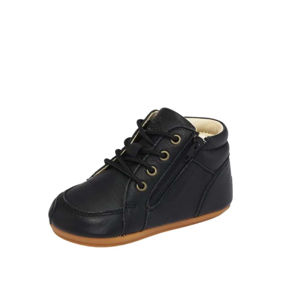 Bundgaard Prewalker Sko i Sort til Børn. Bundgaards Prewalker er en begynder sko til barnet, der så småt er begyndt at øve sig på at gå. Skoen har snøre og lynlås, som gør det let at komme i/af skoen.
