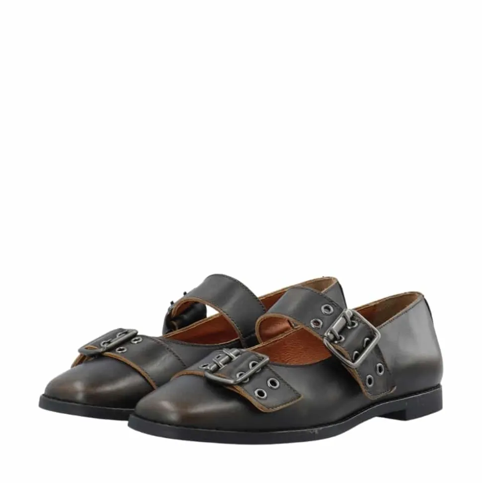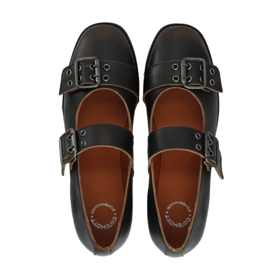 Cashott Casdiana ballerinasko til dame i mørkebrun. Denne moderne ballerinasko kombinerer komfort og stil på fineste vis. Skoen er lavet i blødt læder og har to flotte spænde detaljer, der tilføjer et elegant udtryk. Den runde snude og lille hæl på 1,5 cm giver et klassisk look, mens den bløde indersål sikrer, at du går behageligt hele dagen. Med en gummisål under fødderne får du også et godt og sikkert fodfæste.