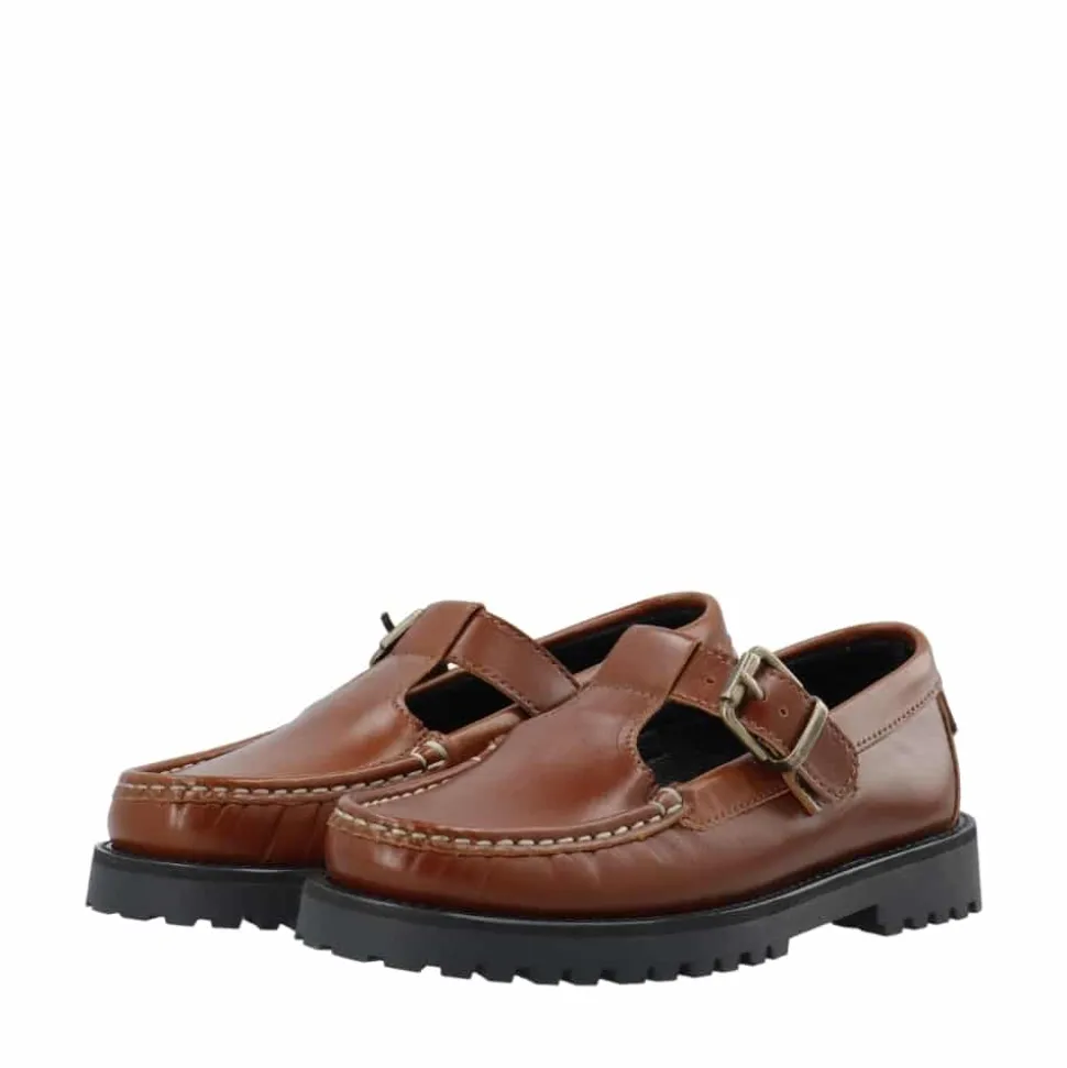 Cashott Caslena Mary Jane sko til dame i cognac. Disse moderne sko i cognacfarvet læder kombinerer klassisk stil med fine detaljer. Den praktiske spændelukning over forfoden gør det nemt at tage skoen på og tilpasse pasformen. Indvendigt finder du en blød sål, der sikrer god komfort hele dagen. Den solide gummisål på cirka 3 cm giver dig stabilitet og øget skridsikkerhed.