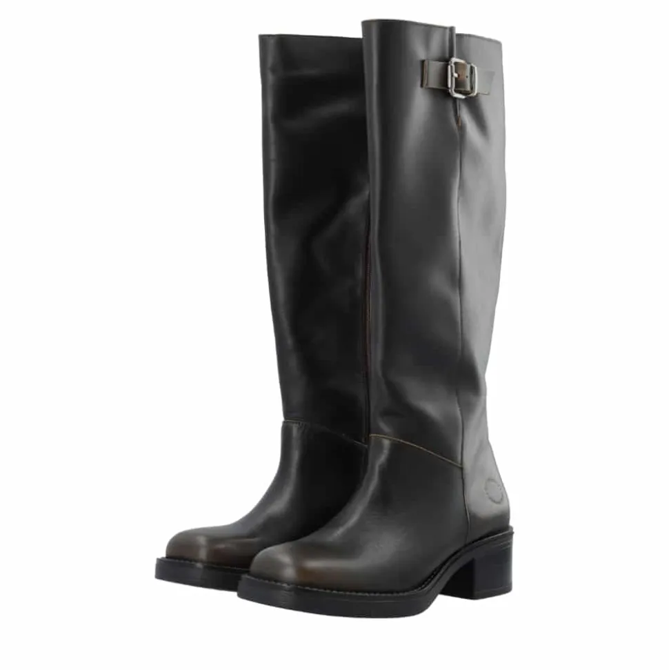 Cashott Casrikke Wide Pull lang støvle til dame i mørkebrun. Elegant støvle i mørkebrun med et elegant og moderne udtryk. Den teksturerede skindoverdel kombineres med en praktisk lynlås på indersiden, så støvlen er nem at tage af og på. Øverst på skaftet giver en justerbar spænde mulighed for en pasform, der sidder perfekt. Indvendigt er der en blød indersål, og den solide blokhæl på omkring 5 cm giver et smukt og komfortabelt løft.