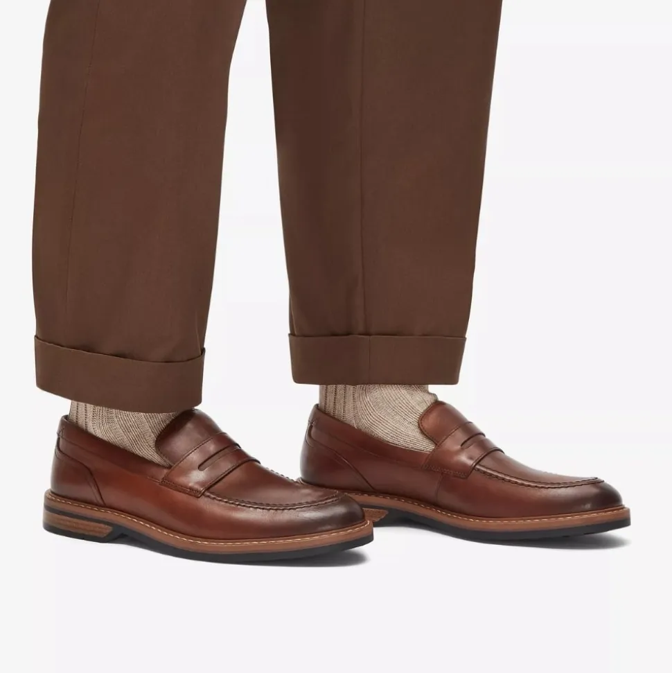Clarks Aldwin Step loafers til herre i brun. Disse loafers til herre er fremstillet i brunt læder og fremhævet af markerede syninger, der skaber et moderne og elegant udtryk. Skoen er nem at få af og på, hvilket gør den både praktisk og komfortabel i hverdagen. Indvendigt er modellen forsynet med en blød skindsål, som giver optimal komfort hele dagen. Ydersålen er solid og mønstret, hvilket giver skoen ekstra støtte og øget skridsikkerhed.