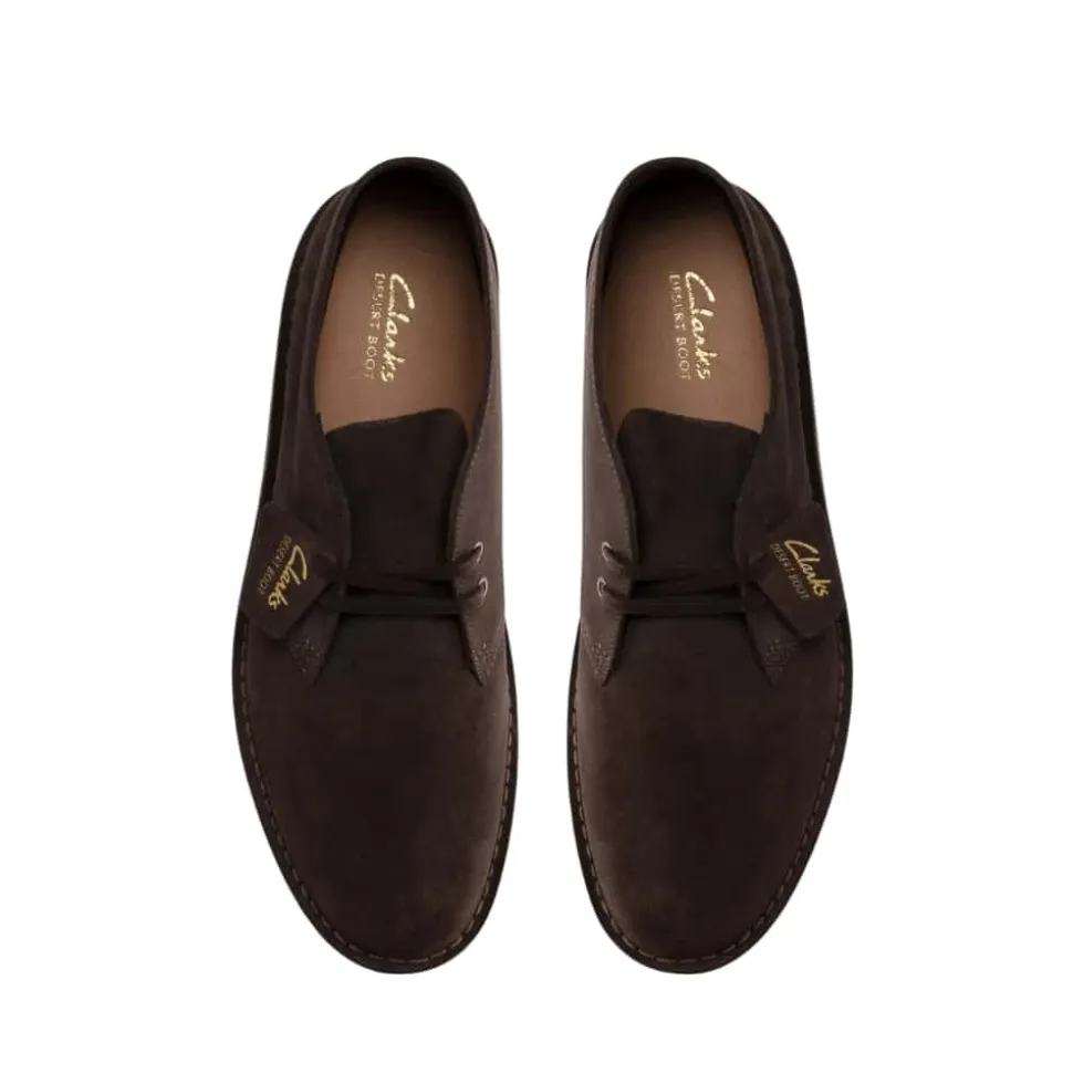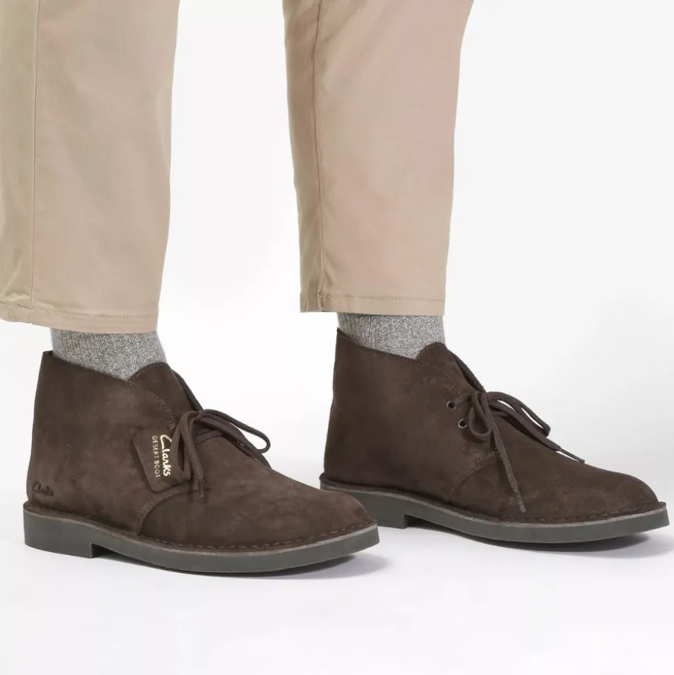 Clarks Desert BT Evo støvle til herre i brun. Denne klassiske støvle kombinerer det tidløse design med det 21. århundredes komfortfunktioner. Den støvle sikrer en perfekt pasform, mens lagene af åndbart materiale sammen med en slidstærk gummisål sikrer let bevægelse og holdbarhed. Støvlen er bygget på en opdateret læst, der tilbyder en mere rummelig pasform, og den udtagelige OrthoLite® Hybrid skum indlægssål giver målrettet, åndbar og tilpasselig polstring. Den ansvarligt udvalgte brune ruskind overdel og den fleksible stiksyning sikrer både kvalitet og komfort. En robust gummisål med genanvendte materialer giver fremragende greb, mens de genanvendte snørebånd reducerer miljøpåvirkningen.