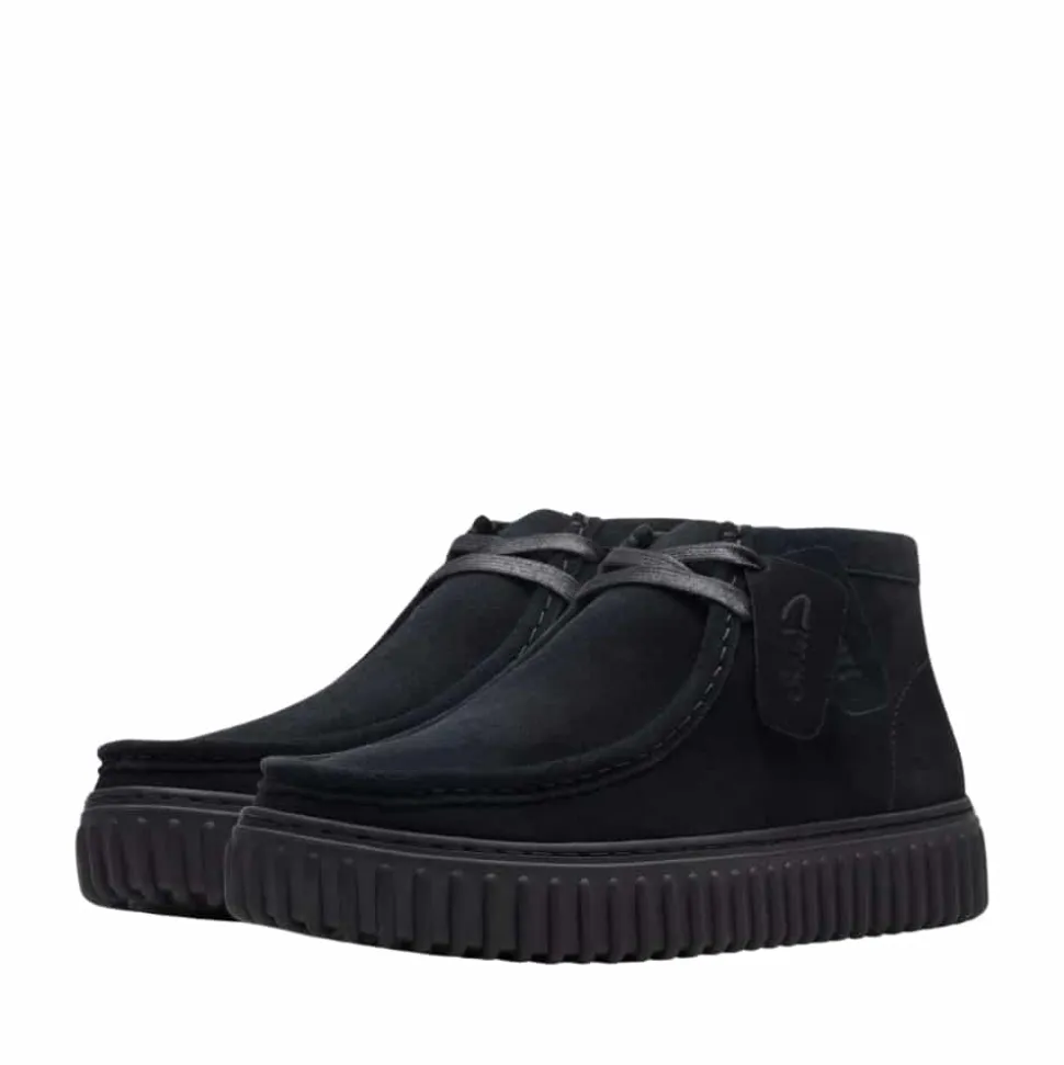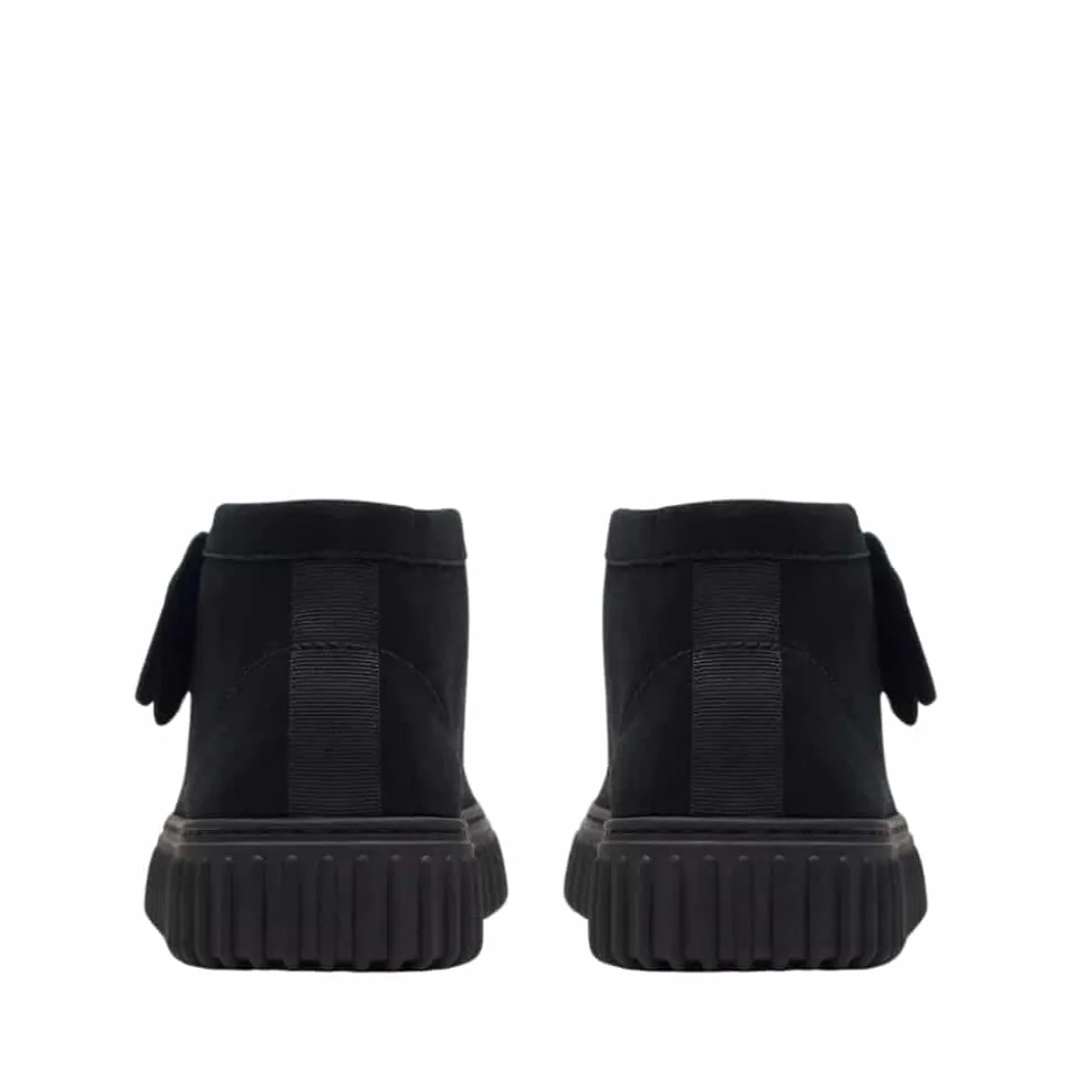 Clarks Torhill HI støvle til herre i sort. Moderne støvle i en klassisk sort farve med enkle detaljer der giver et stilfuld look. Støvlen har en overdel i ruskind og snørebånd foran der giver en justerbar pasform. Indvendigt bliver du mødt af en blød og udtagelig indersål, der giver optimal komfort. Den rillede plateausål giver øget støtte dagen lang og et ekstra strejf af stil.