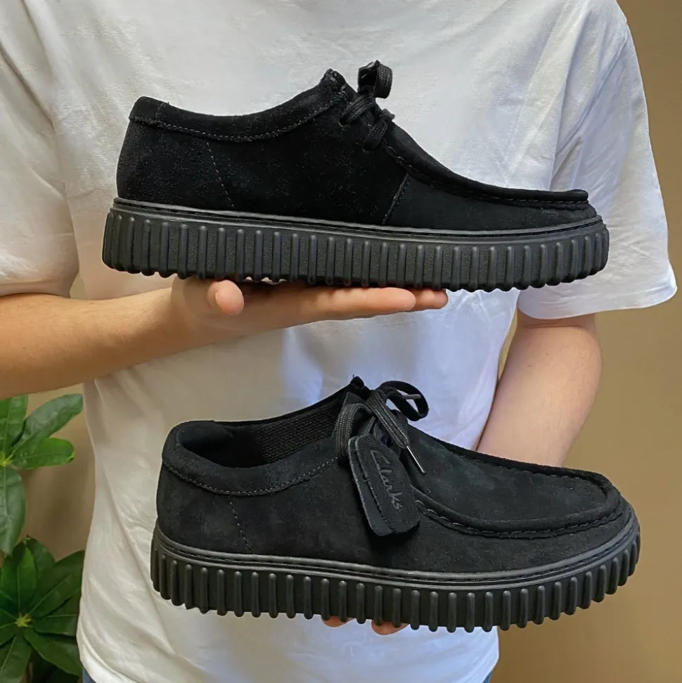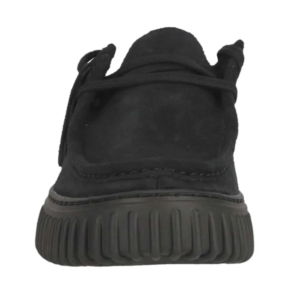 Clarks Torhill Lo sko til herre i sort. Populær herresko i en moderne sort farve med et stilfuldt twist. Skoens ydre er fremstillet af ruskind, mesn det indvendige er beklædt med dele af glatskind, som sikrer en behagelig oplevelse. Den bløde indersål er designet med puder ved trædepuden og hælen for maksimal komfort. Skoen har justerbare snørebånd, så den kan tilpasses dine behov. Den chunky sorte gummisål og den runde snude med markante syninger tilføjer et unikt og stilfuldt udtryk. Derudover er skoen udstyret med en praktisk udtagelig indersål.