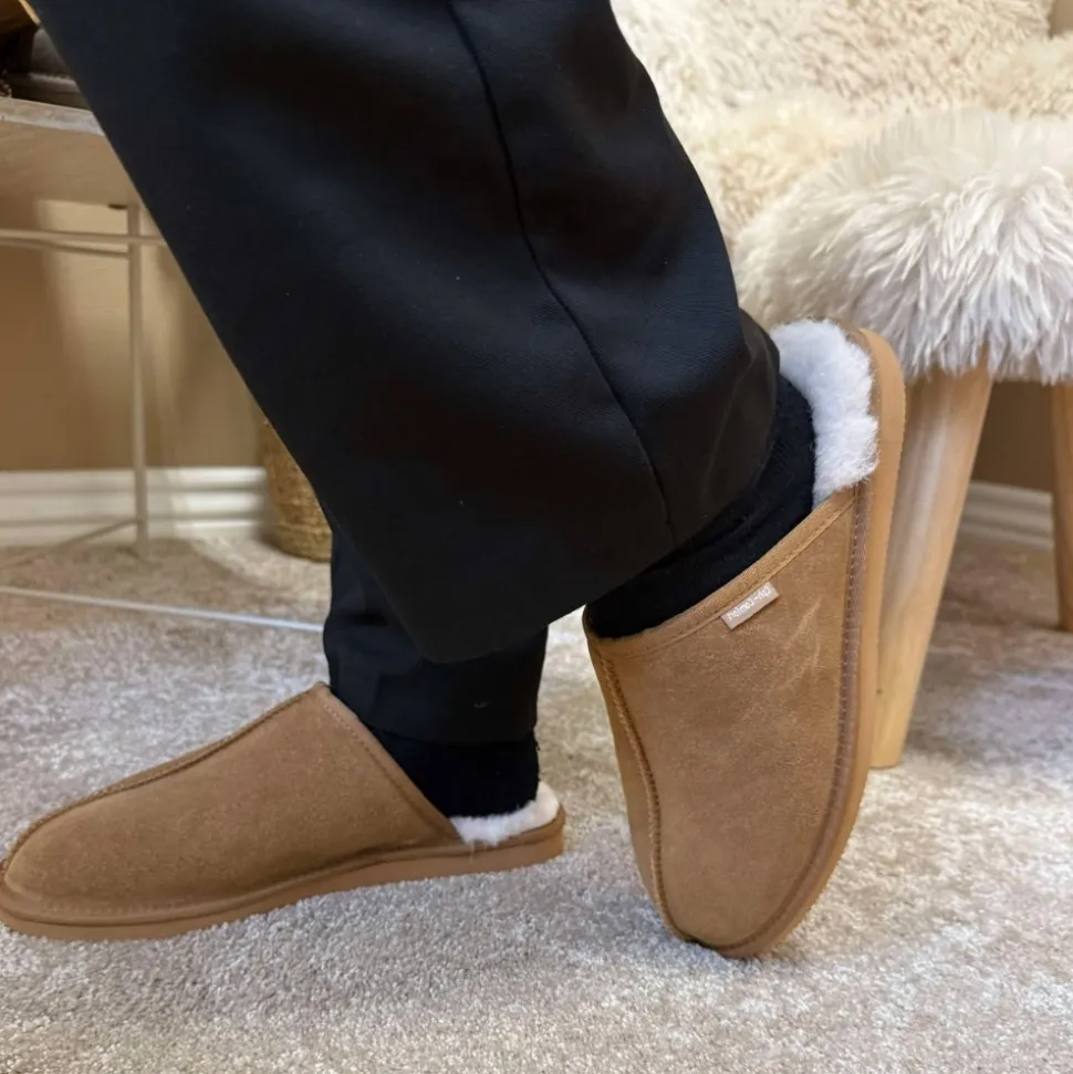 CPH-Comfort Slip Wool hjemmesko til herre i brun. Disse tøffel-hjemmesko er det perfekte valg til varme og komfort. Overdelen er lavet af ægte ruskind, som giver et elegant og holdbart udtryk. Hjemmeskoen har en blød og varm foring der holder fødderne varme hele dagen. Den bløde sål med stødabsorberende egenskaber gør dem ideelle til afslappende dage derhjemme.