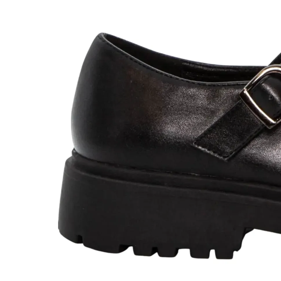 Duffy Lattarico Tre Mary Jane sko til dame i sort. Moderne sort sko med et flot og tidløst design, der passer til mange anledninger. Over vristen har skoen en justerbar rem med spænde, så pasformen nemt kan tilpasses foden. Indvendigt mødes du af en blød indersål, som giver behagelig komfort hele dagen. Ydersålen har et mønster, og den 4 cm høje blokhæl giver et elegant løft uden at gå på kompromis med komforten.
