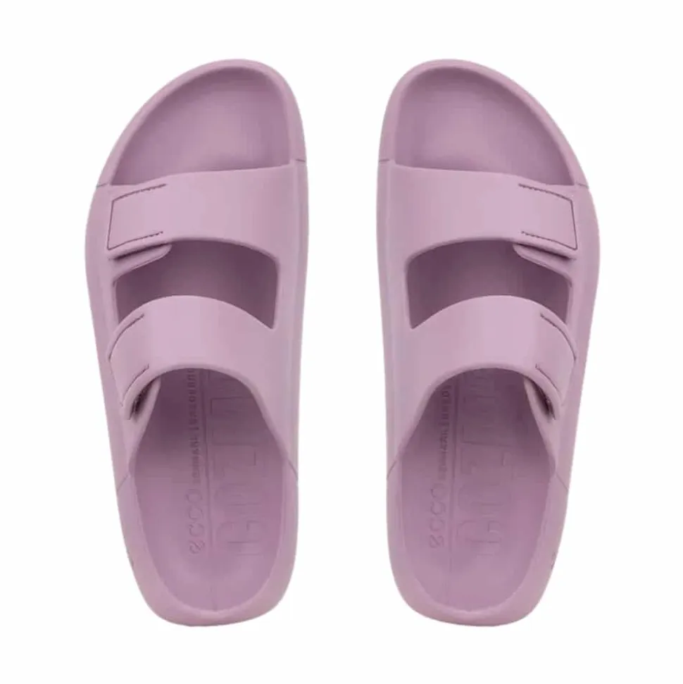 Ecco Cozmo E sandal til dame i lilla. Denne lette og fleksible sandal i en frisk lilla farve giver et stilfuldt udtryk. To velcroremme giver mulighed for at justere pasformen, mens slip-in designet gør den nem at tage af og på. Den bløde EVA-sål og Ecco Fluidform™ teknologi sikrer komfort hele dagen, og den rillet ydersål giver ekstra skridsikkerhed.