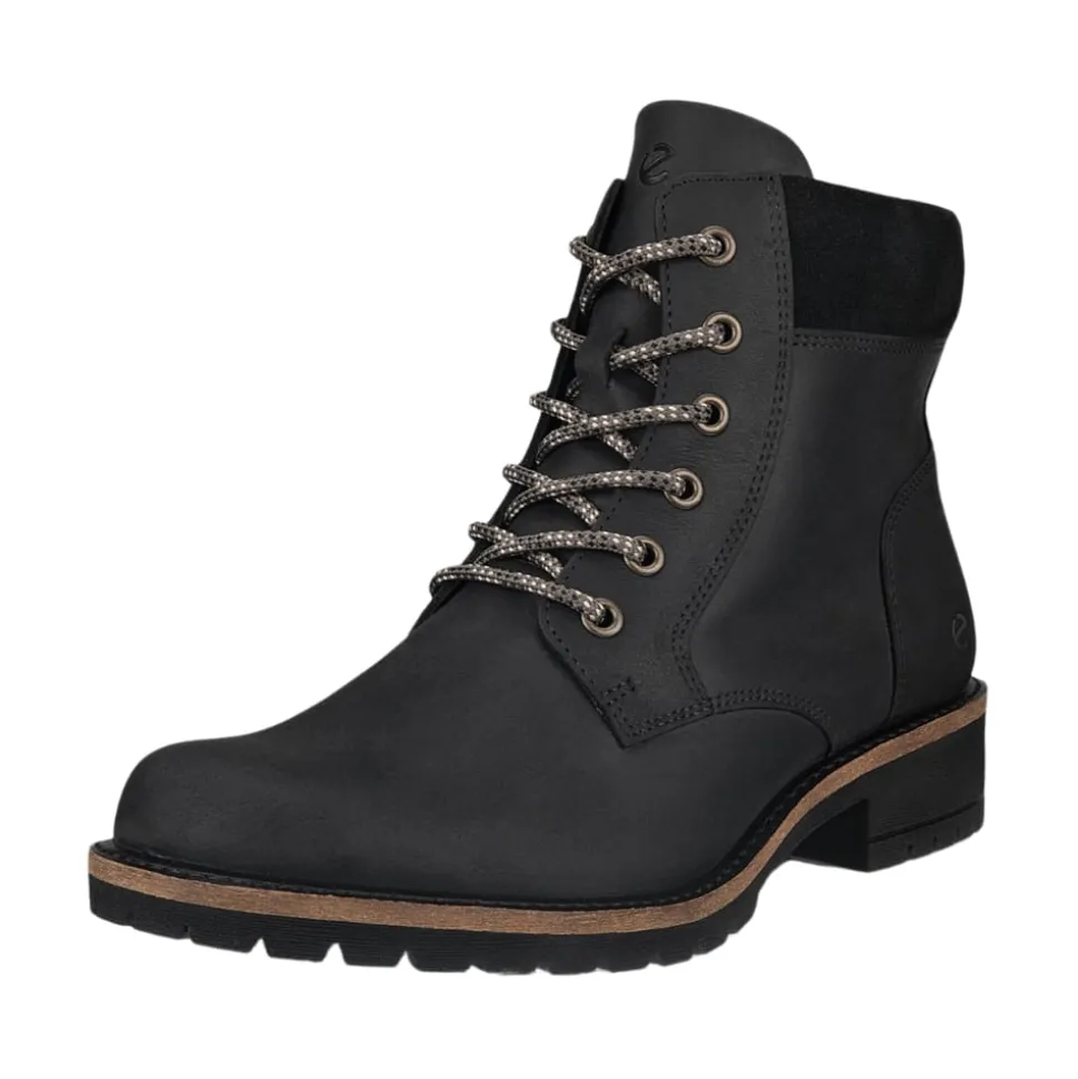 Ecco Elaina støvle til dame i sort. Oplev den perfekte kombination af stil og komfort med denne smarte ankelstøvle. Overdelen er lavet i blødt nubucklæder, og den funktionelle lynlås på indersiden gør det let at tage støvlen af og på. Snørebåndene foran giver en justerbar pasform, mens den bløde, udtagelige indersål sikrer høj komfort. Med Ecco Fluidform™ følger støvlen fodens naturlige bevægelser. Den solide ydersål med en blokhæl på ca. 4 cm og et godt mønster giver stabilitet, støtte og øget skridsikkerhed hele dagen.