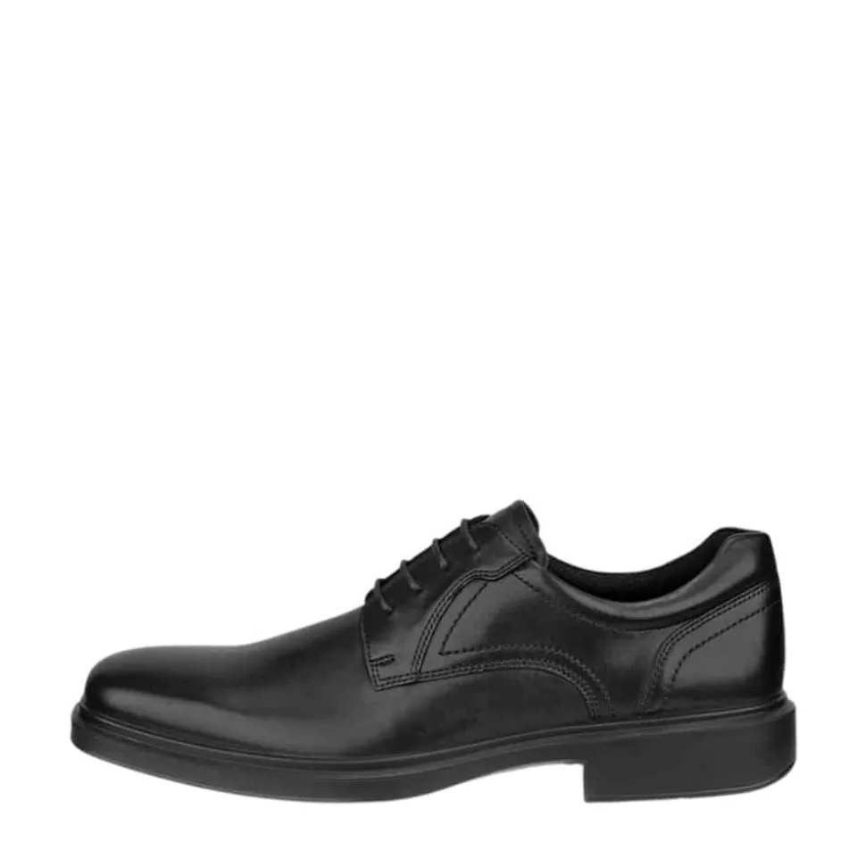 Ecco Helsinki 2 sko til herre i sort. Denne klassiske herresko er lavet i læder af høj kvalitet og forener stilrent design med høj komfort. Snørebåndene foran giver mulighed for at justere pasformen, så skoen sidder præcis, som den skal. Indvendigt finder du en blød og udtagelig indersål, der øger komforten ved hver brug. Ydersålen er både fleksibel og stødabsorberende og er designet med et mønster, der sikrer støtte og skridsikkerhed gennem hele dagen.