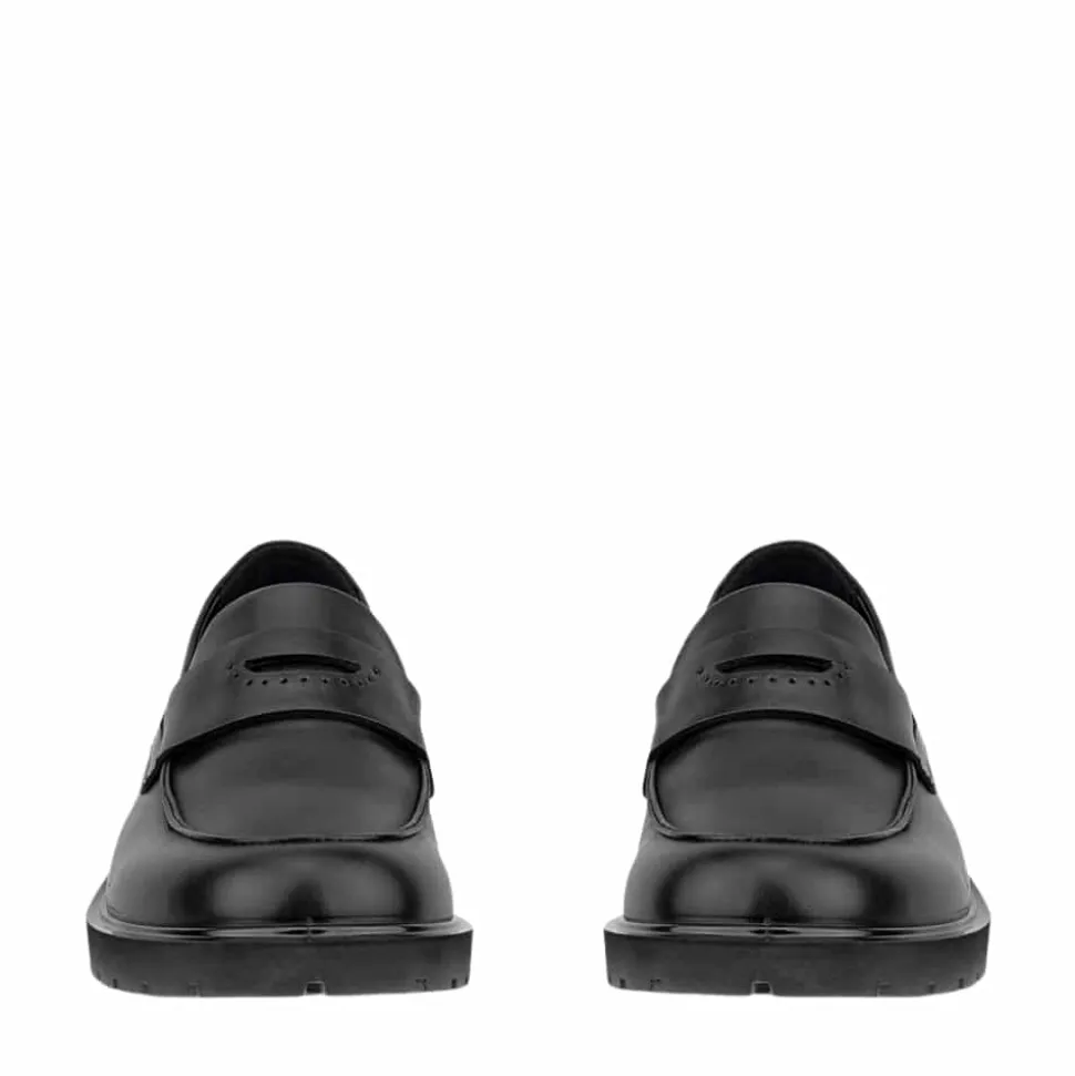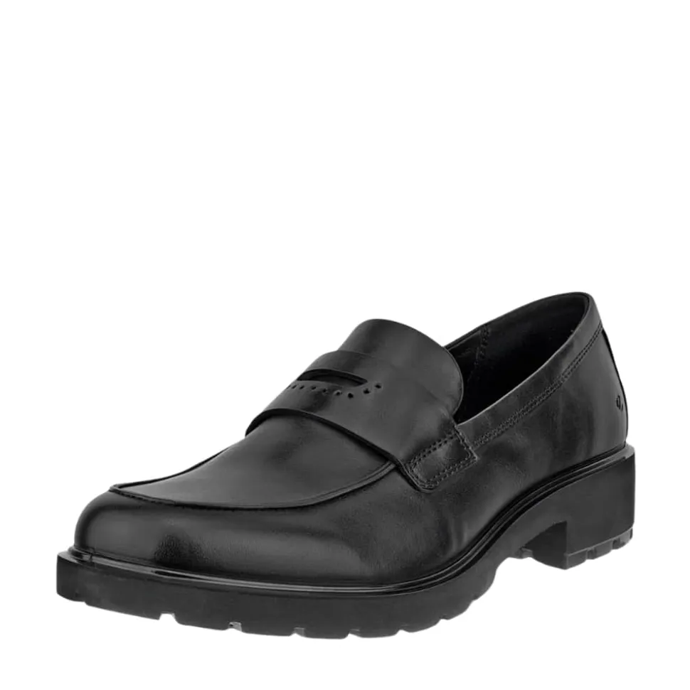 Ecco Metropole Vienna loafers til dame i sort. Denne sorte loafers har et moderne udtryk med en fin detalje over forfoden, der fuldender det stilrene look. Overdelen er lavet i 100% læder, og indvendigt får du en blød skindsål med Dual Fit, som kan tages ud for at justere pasformen efter behov. Skoen har en chunky ydersål på cirka 4 cm, som giver både højde og støtte. Mønsteret under sålen øger skridsikkerheden og giver dig en stabil gang i hverdagen.