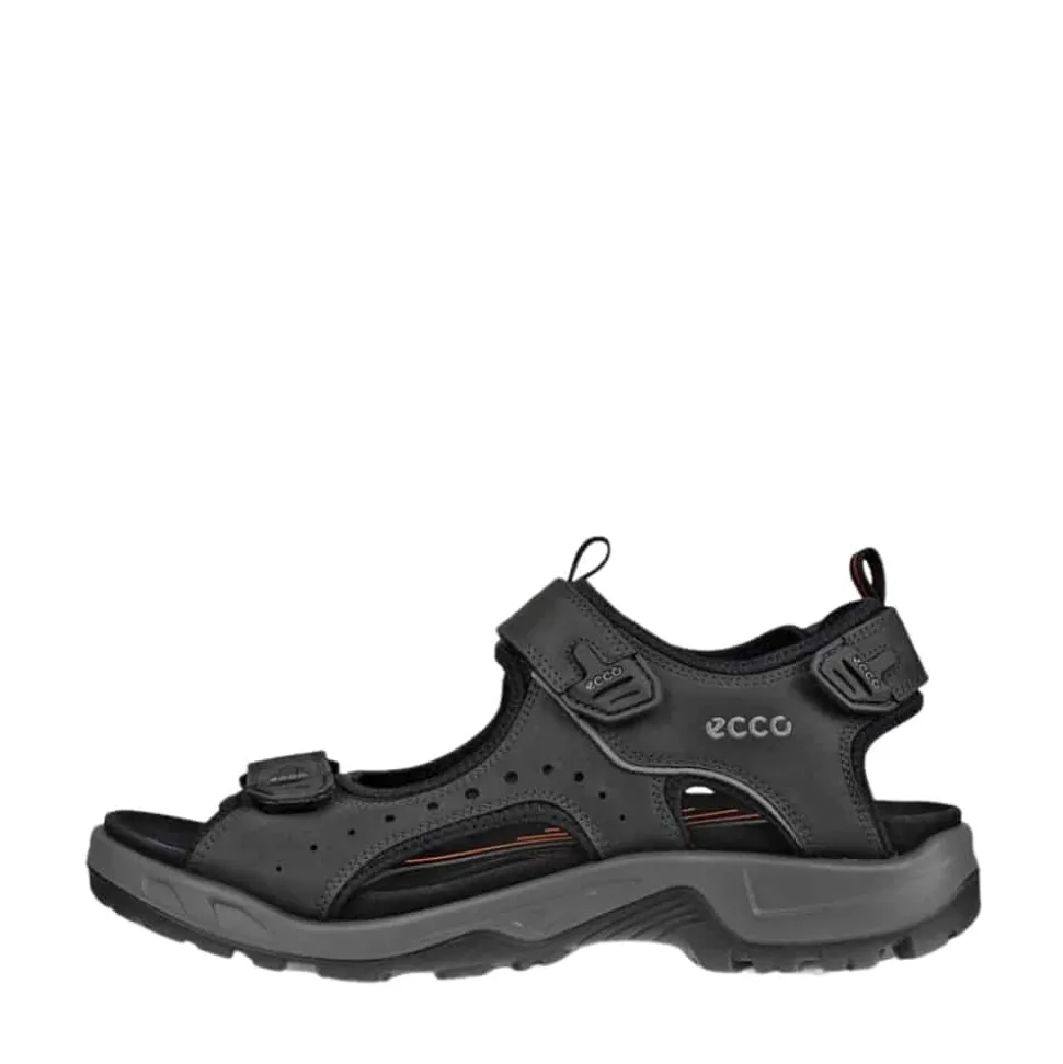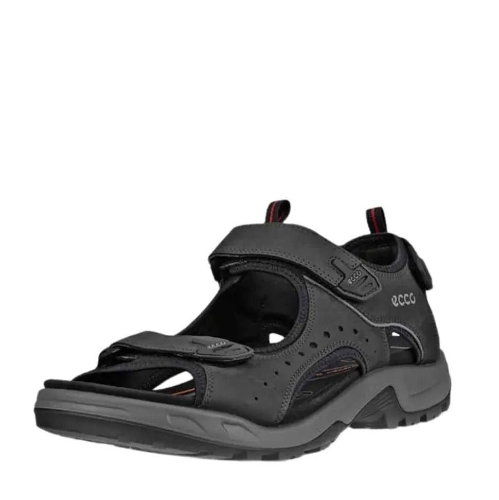 Ecco Offroad Andes II sandal til herre i sort. Denne lette og komfortable sandal i sort nubucklæder er skabt til dig, der ønsker både praktisk funktion og behagelig pasform. Med tre velcroremme kan du nemt justere sandalen efter dine behov, samtidig med at det gør den hurtig at tage af og på. Indvendigt finder du en formstøbt EVA-sål, som giver støtte og effektiv stødabsorbering. Ydersålen er udstyret med ECCO FLUIDFORM™ teknologi og et mønstret greb, der sikrer både skridsikkerhed og stabilitet i dine skridt.