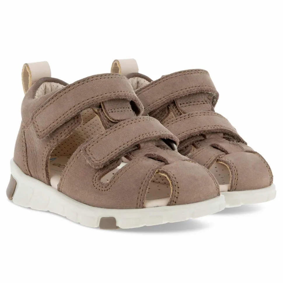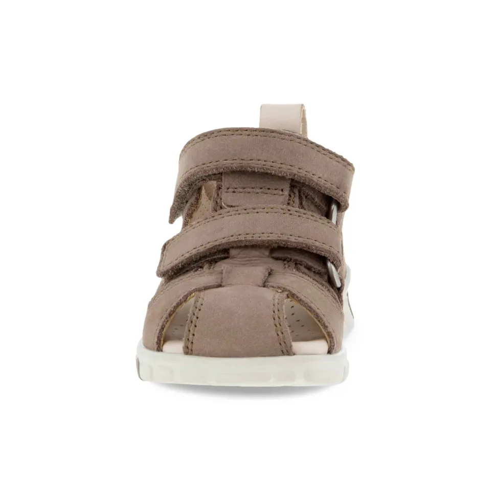 Ecco Mini Stride sandalen til børn i brun er lavet af et kombineret materiale af Ecco’s eget læder og tekstil, som er både blødt og slidstærkt. Læderet giver sandalen en elegant og luksuriøs finish, mens tekstilet sikrer en god åndbarhed og fleksibilitet. Det justerbare velcrospænde gør det nemt for børn at tage sandalen af og på, samtidig med at det sikrer en tæt og støttende pasform.