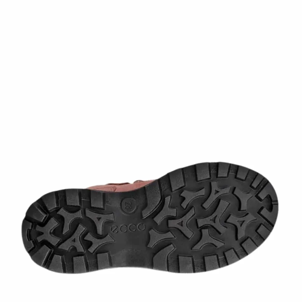 Ecco Snow Mountain vinterstøvle til børn i lyserød. Smart vinterstøvle i en moderne lyserød farve med moderne detaljer. Støvlen har en overdel i læder samt to velcroremme der gør det let at komme i og af støvlen samt giver en god pasform. Indvendigt er der en varm foring der holder fødderne varme, mens Eccos Waterproof™ membran gør støvlen 100% vandtæt. Med Ecco Fluidform™ teknologi sikres en fremragende komfort og pasform, mens gummisålen med et godt mønster giver øget skridsikkerhed.
