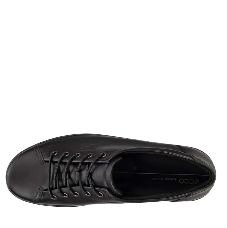 Ecco Soft 2.0 Tie sko til dame i sort. ECCO SOFT 2.0 er en snøresko til gåture lavet af førsteklasses fuldkornslæder, der hylder ECCOs skandinaviske arv. Den har en retro silhuet og et opdateret look, der passer til både chikke og afslappede outfits. Overdelen er fremstillet af rige lædermaterialer fra vores egne garverier uden brug af krom. Den bløde tekstilforing sikrer åndbar komfort, mens den aftagelige mikrofiber-indlægssål med ECFS™ teknologi tilføjer ekstra komfort. ECCO SOFT 2.0 er den perfekte blanding af stil og komfort med en skandinavisk retro følelse.