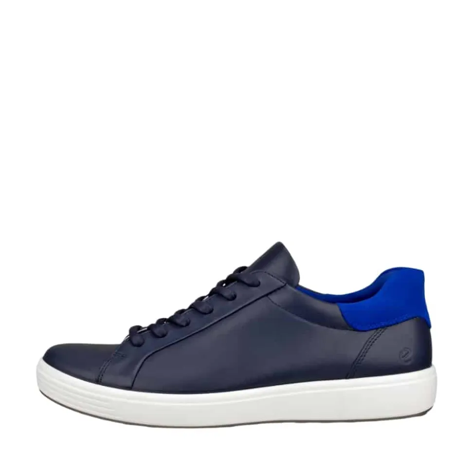 Ecco Soft 7 M Easy Slip sneakers til herre i blå. Gør hverdagen lettere med ECCO Soft 7 M Easy Slip sneakers – en fusion af skandinavisk design og avanceret komfortteknologi med fast hælkappe så du slipper for brug af skohorn eller bukke dig ned for at tage skoen på. Den letvægtige konstruktion kombineret med en blød læderoverdel skaber en tidløs sko, der passer til enhver stil. Den stødabsorberende sål sikrer behagelig støtte, mens den åndbare læder-indlægssål med ECFS™ teknologi holder dine fødder friske hele dagen. Perfekt til mænd, der sætter pris på kvalitet og funktionalitet uden at gå på kompromis med stilen.