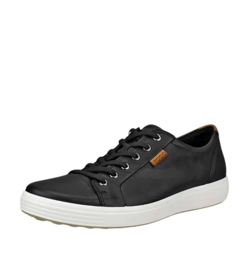 Ecco Soft 7 M sneakers til herre i sort. Denne cool og enkle herre sneakers er let og har snørebånd, der kan justeres for en optimal pasform og er fremstillet af smidigt, luksuriøst og blødt læder læder, hvilket giver den et stilfuldt udtryk. Den slidstærke PU- og TPU-ydersål med mønster sikrer pålideligt fodfæste, når du er på farten. Den formstøbte indlægssål i læder og tekstil absorberer stød og sikrer åndbarhed, mens ECCO FLUIDFORM™ teknologien giver en anatomisk pasform og en naturlig fornemmelse.
