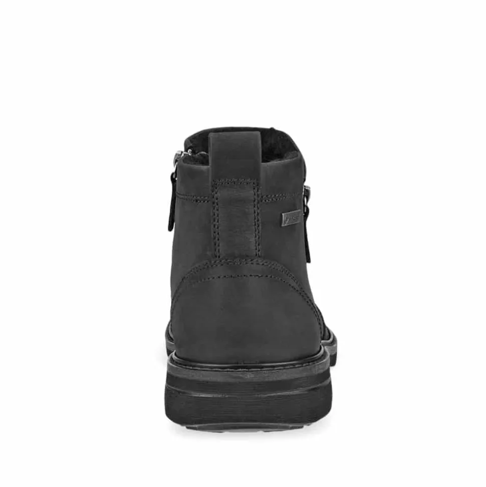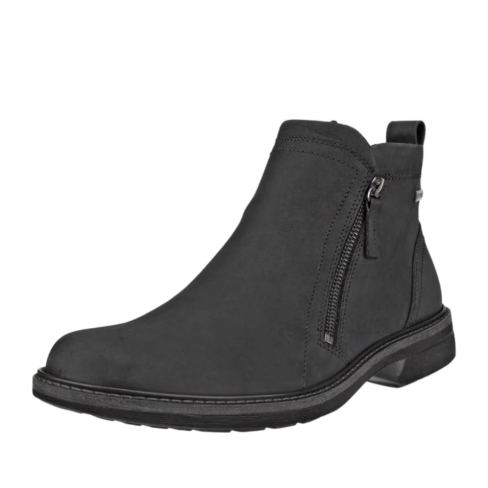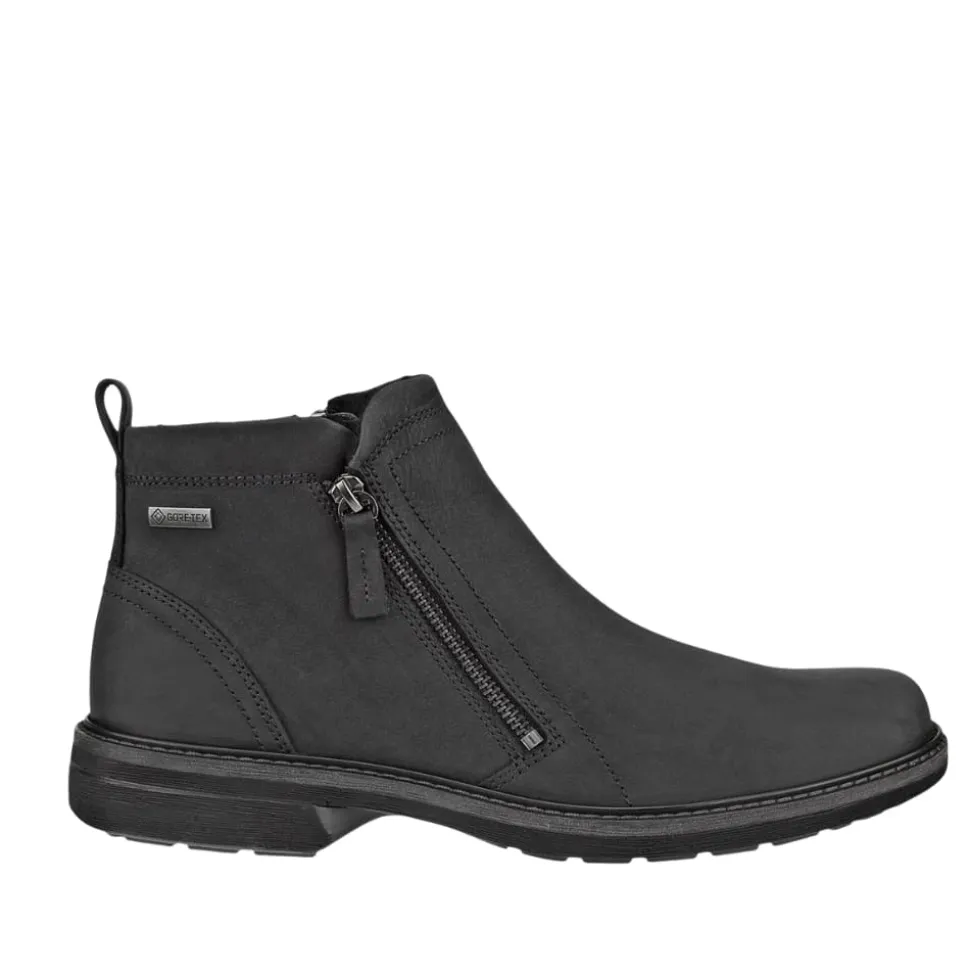 Ecco Turn støvle til herre i sort. Nyd den lette og komfortable skindstøvle fra Ecco, fremstillet i højeste kvalitet. Støvlen er designet med to praktiske lynlåse, som gør det nemt at tage den af og på. Indvendigt bliver du mødt af en blød og udtagelig indersål samt en varm foring af 100% uld, så dine fødder holdes varme. Med Gore-Tex teknologien er støvlen 100% vandtæt, så dine fødder holdes tørre under alle forhold. Derudover er den udstyret med en stødabsorberende hæl med Shock Point, som giver ekstra komfort ved hvert skridt.