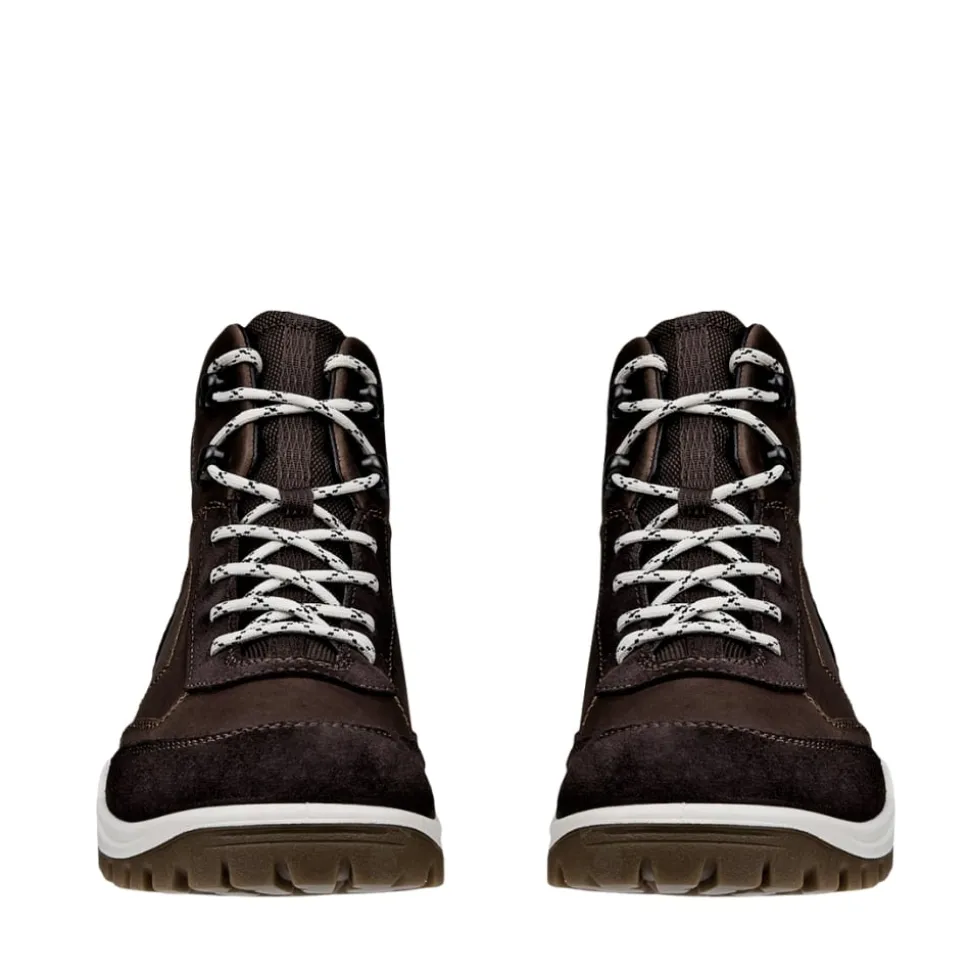 Ecco Xpedition III W støvle til dame i mørkebrun. Stil og komfort mødes i denne praktiske støvle i mørkebrun læder. Foran har Støvlen snørebånd, der giver mulighed for at tilpasse pasformen og gør det let at få den af og på. Indvendigt sørger en tekstilforing og en blød, udtagelig filtsål for høj komfort dagen lang. Støvlen er udstyret med Ecco’s Waterproof membran, som sikrer vandtæthed og holder fødderne tørre. Den chunky gummisål med mønster giver stabilitet og skridsikkerhed, mens Ecco Receptor® teknologien understøtter fodens naturlige bevægelse og giver ekstra stødabsorbering.