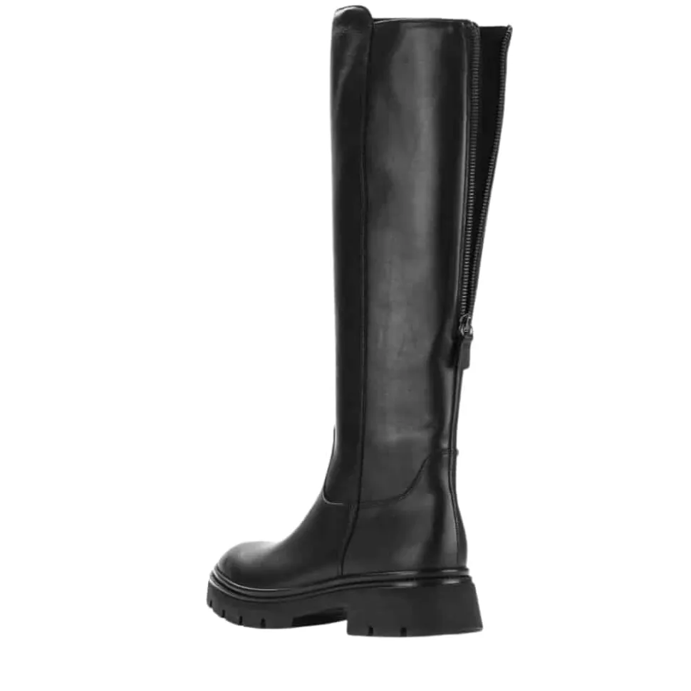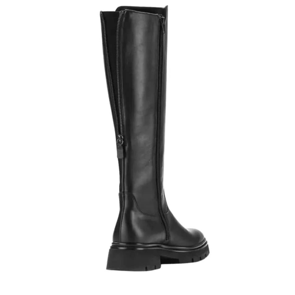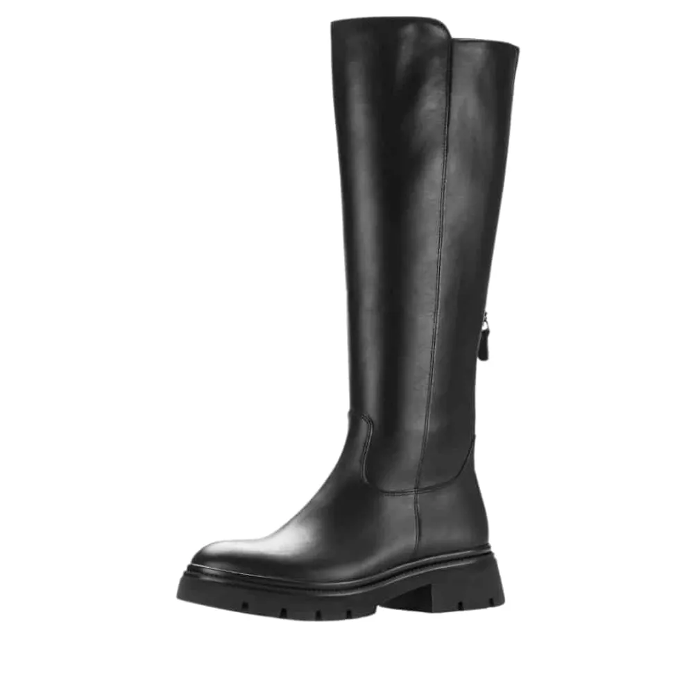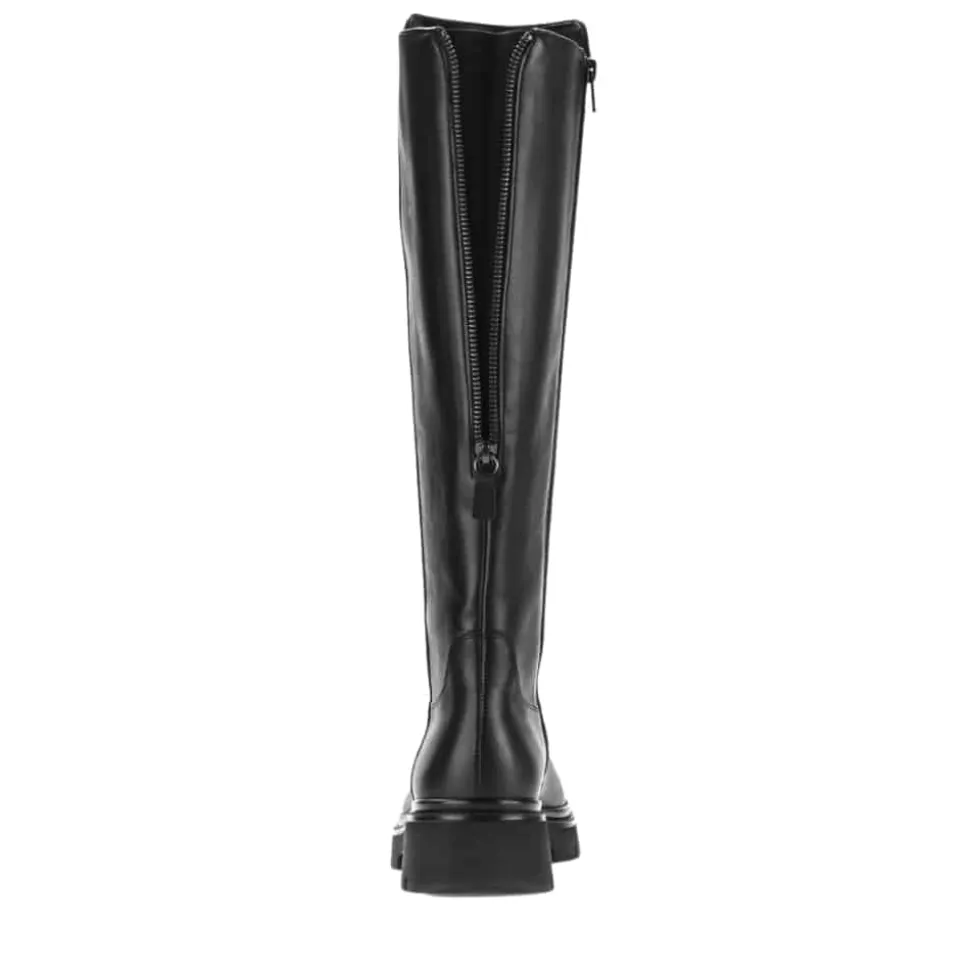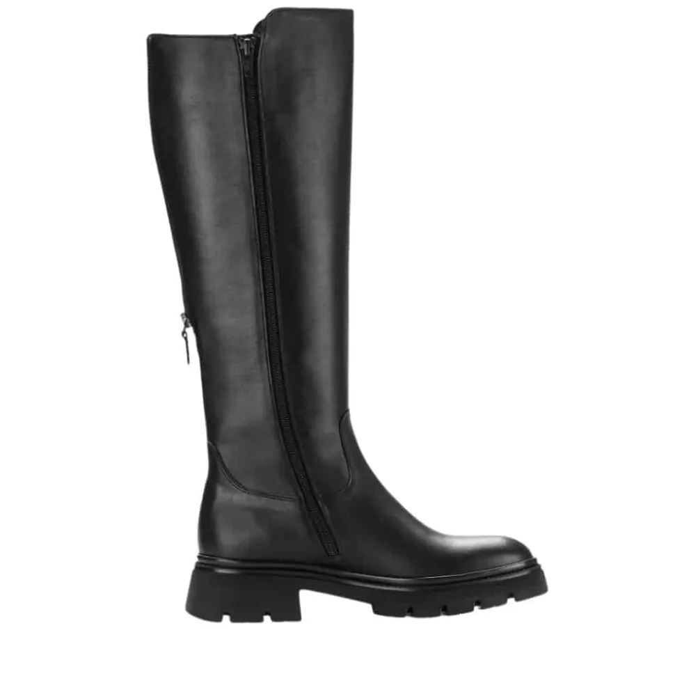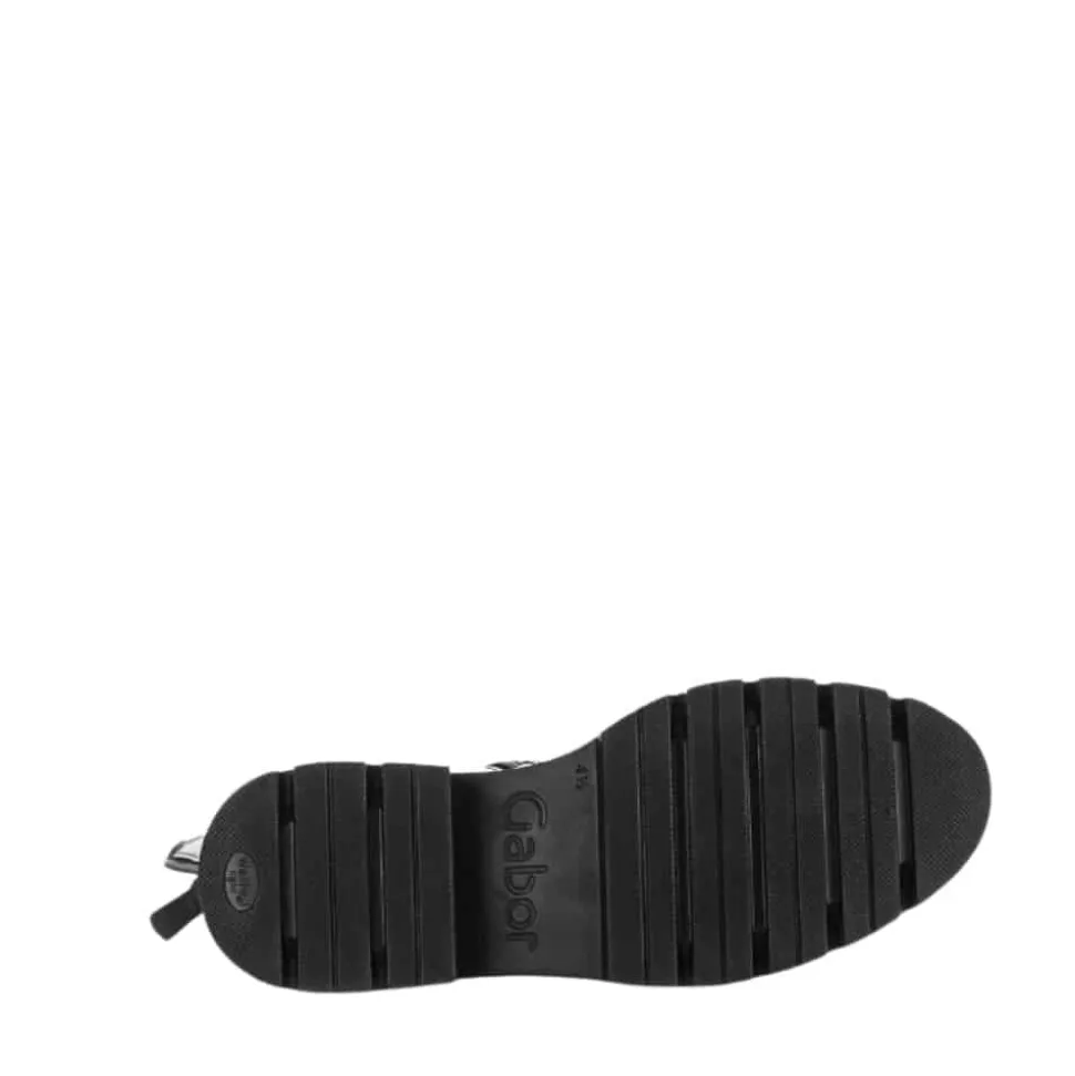 Gabor lang støvle til dame i sort. Denne lange støvle i sort er fremstillet med en flot skindoverdel, som giver et elegant udtryk. Bagpå har støvlen en funktionel lynlås, der tilfører et feminint touch og en mere rummelig pasform, mens den funktionelle lynlås på indersiden gør det nemt at tage støvlen af og på. Indvendigt sørger en let foring og en blød udtagelig sål for komfort hele dagen. Den chunky ydersål er mønstret og giver øget skridsikkerhed.