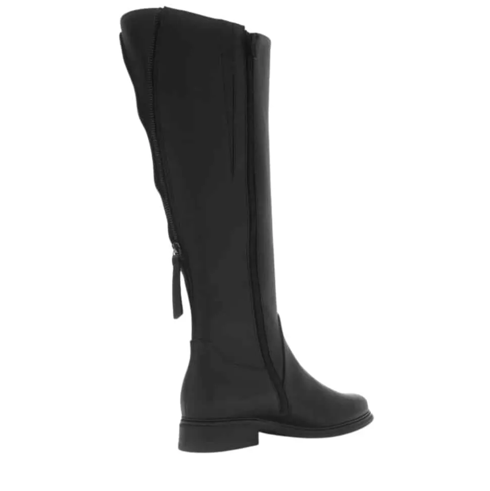 Gabor lang støvle til dame i sort. Klassisk og elegant sort støvle med en skindoverdel, der giver et tidløst look. Bagpå har modellen en funktionel lynlås, som tilfører et flot touch, mens skaftvidde L giver en mere rummelig pasform. På indersiden er støvlen udstyret med endnu en lynlås, der gør det nemt at tage den af og på. Indvendigt finder du en blød udtagelig sål, der giver god komfort, mens den mønstrede ydersål øger skridsikkerheden.