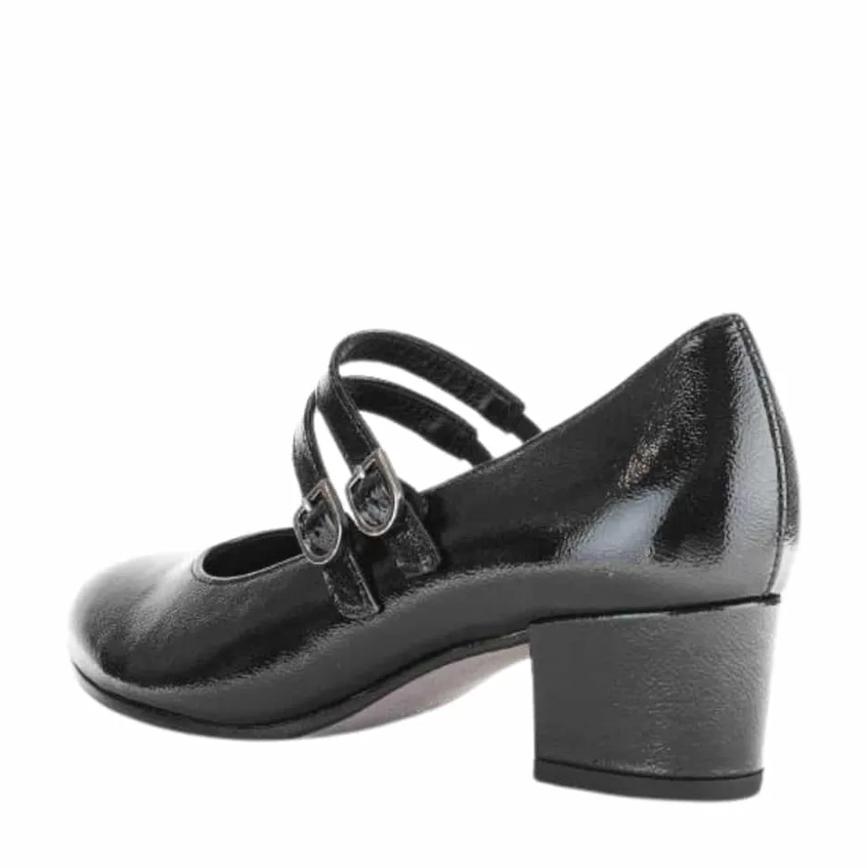 Gabor pumps til dame i sort lak. Denne moderne damesko i sort er designet med en elegant lakoverdel, som tilføjer et sofistikeret udtryk. Skoen har to remme med justerbare spænder og en lille elastik over vristen, der sikrer en god og fleksibel pasform. Indvendigt giver den bløde skindsål og ekstra vidde G både komfort og rummelighed. Den 5 cm høje blokhæl giver et stilfuldt løft, uden at det går ud over komforten.