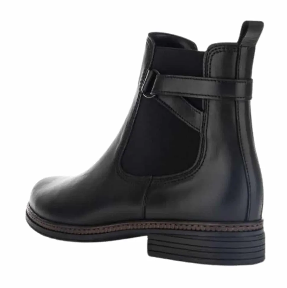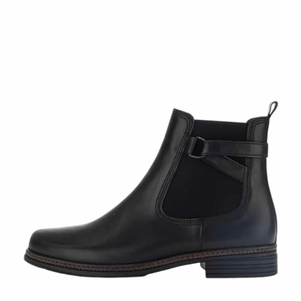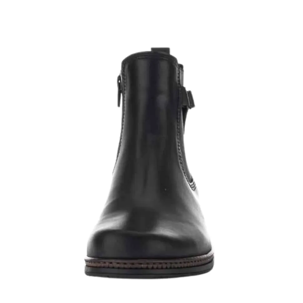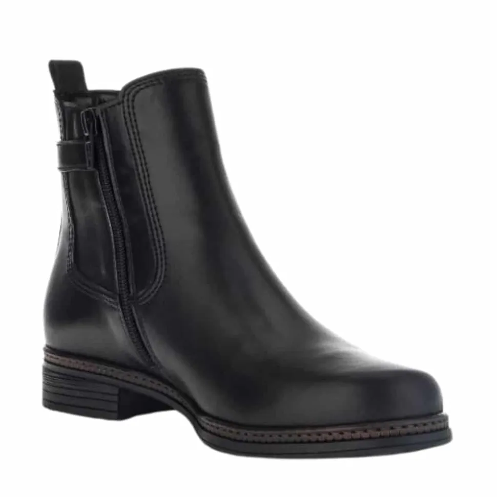 Gabor støvle til dame i sort. Dejlig let støvle i lækker skindkvalitet. Støvlen har en lækker overdel af glatskind samt fine detaljer på siden. Støvlen er dejlig nem at komme i og af med lynlås på indersiden samt elastik på ydersiden. Desuden har støvlen en dejlig pasform for optimal komfort. Støvlen har en også skridsikker ydersål med et godt mønster, der hjælper dig med at stå bedre fast.