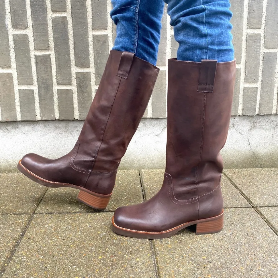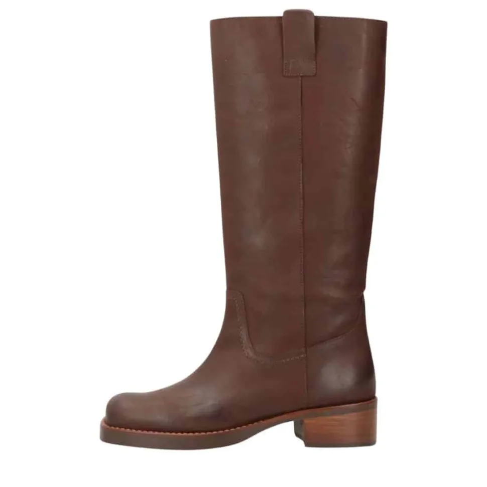 Phenumb Copenhagen Cameron lang støvle til dame i mørkebrun. Denne langskaftede støvle, fremstillet i 100% læder, er det perfekte valg for dig, der vil omfavne trenden med lange støvler. Dens moderne design og enkle detaljer skaber et tidløst udtryk, mens læderet kun bliver smukkere med tiden. Den solide hæl på cirka 5 cm giver et behageligt løft, så du både kan føle dig elegant uden at gå på kompromis med komforten. Med en firkantet snude, der tilfører ekstra karakter, er denne støvle nem at kombinere med ethvert outfit.