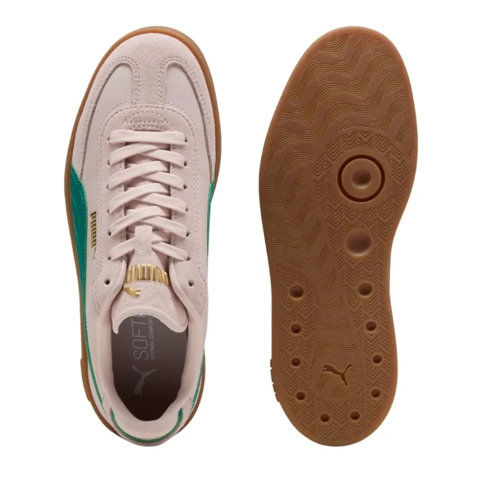 Puma Club II Era sneakers til dame i lyserød. Disse sko kombinerer stil og komfort på bedste vis. Det moderne streetstyle look får et friskt twist med ruskind og grønne detaljer, som giver skoen et cool udtryk. De ikoniske Puma detaljer tilføjer et sporty touch. Indvendigt er skoen udstyret med en udtagelig SoftFoam+ indersål, som sikrer god støddæmpning og høj komfort hele dagen. Den brune ydersål i gummi giver øget støtte og skridsikkerhed.