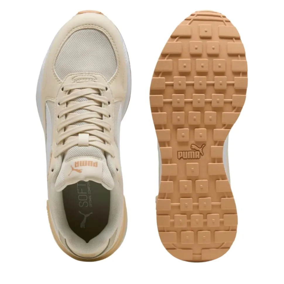 Puma Graviton sneakers til dame i beige. Moderne sneakers med stilfulde detaljer, der giver et trendy udtryk. Det perfekte valg for dig, der ønsker både komfort og et moderigtigt look. Snørebåndene foran gør det nemt at justere pasformen, mens den bløde og udtagelige Puma Soft indersål sikrer optimal komfort. Den chunky ydersål tilføjer et moderne touch og giver samtidig ekstra støtte og skridsikkerhed med sit mønstrede design.
