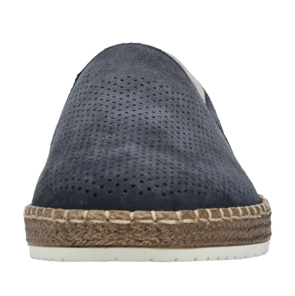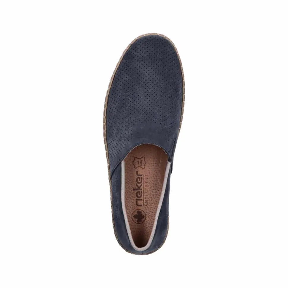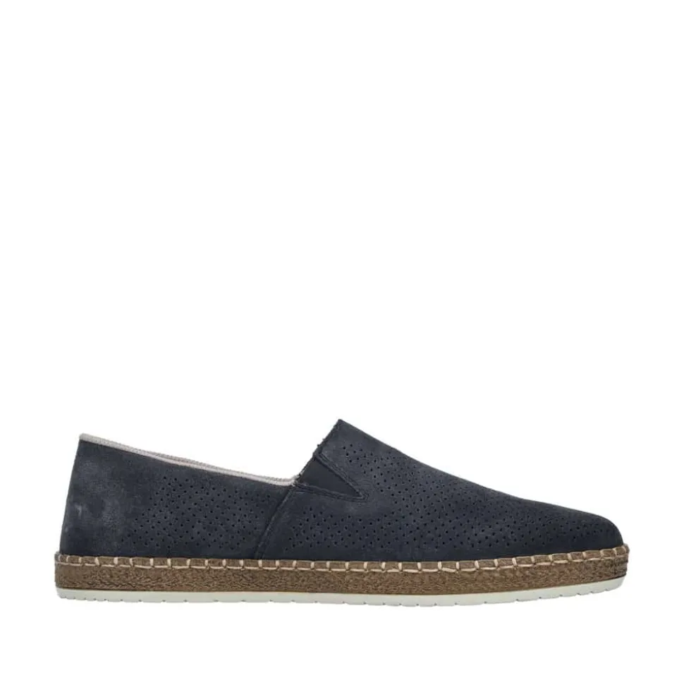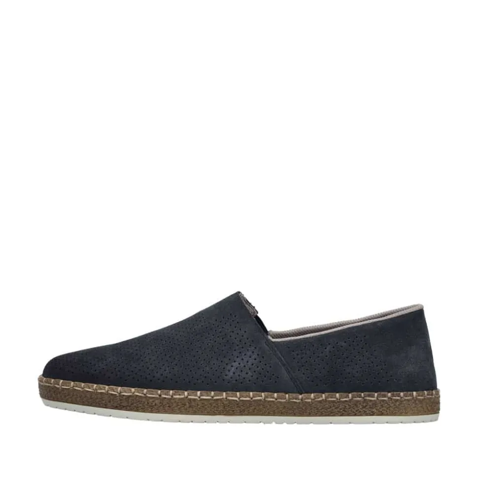 Rieker hyttesko til herre i blå. Oplev enestående komfort med disse Rieker-hytte til herrer i en elegant grå nuance. Fremstillet i slidstærkt ruskind og med en fleksibel konstruktion, der tilpasser sig dine fødder. Åbningen gør det nemt at tage dem på, mens den stødabsorberende PU-sål og den bløde læder-dæksål sørger for komfort dagen lang. Med komfortvidde G ½ får dine fødder ekstra bevægelsesfrihed med ekstra plads i forfoden.